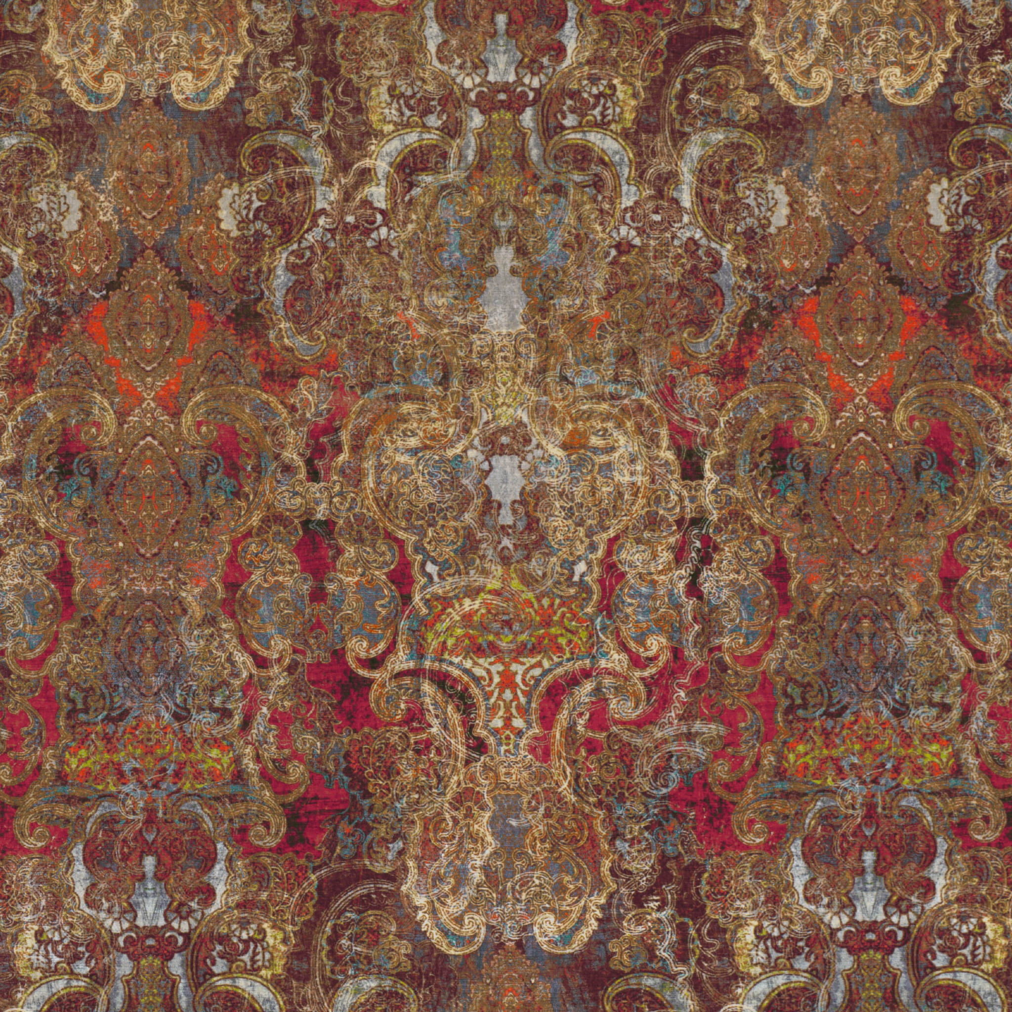 Tkanina Herbaria 02 Maraque - Ten wyjątkowy welwet zachwyca bogactwem wzoru damaskowego, inspirowanego tradycyjną sztuką marokańską. Wielkoformatowy wzór składa się z wielu warstw misternych detali, które zostały starannie ułożone, tworząc harmonijną całość. Miękki, delikatny welur wiskozowy nadaje tkaninie luksusowy wygląd i przyjemną w dotyku powierzchnię. Cyfrowy druk pozwala na precyzyjne odwzorowanie nawet najmniejszych szczegółów wzoru.