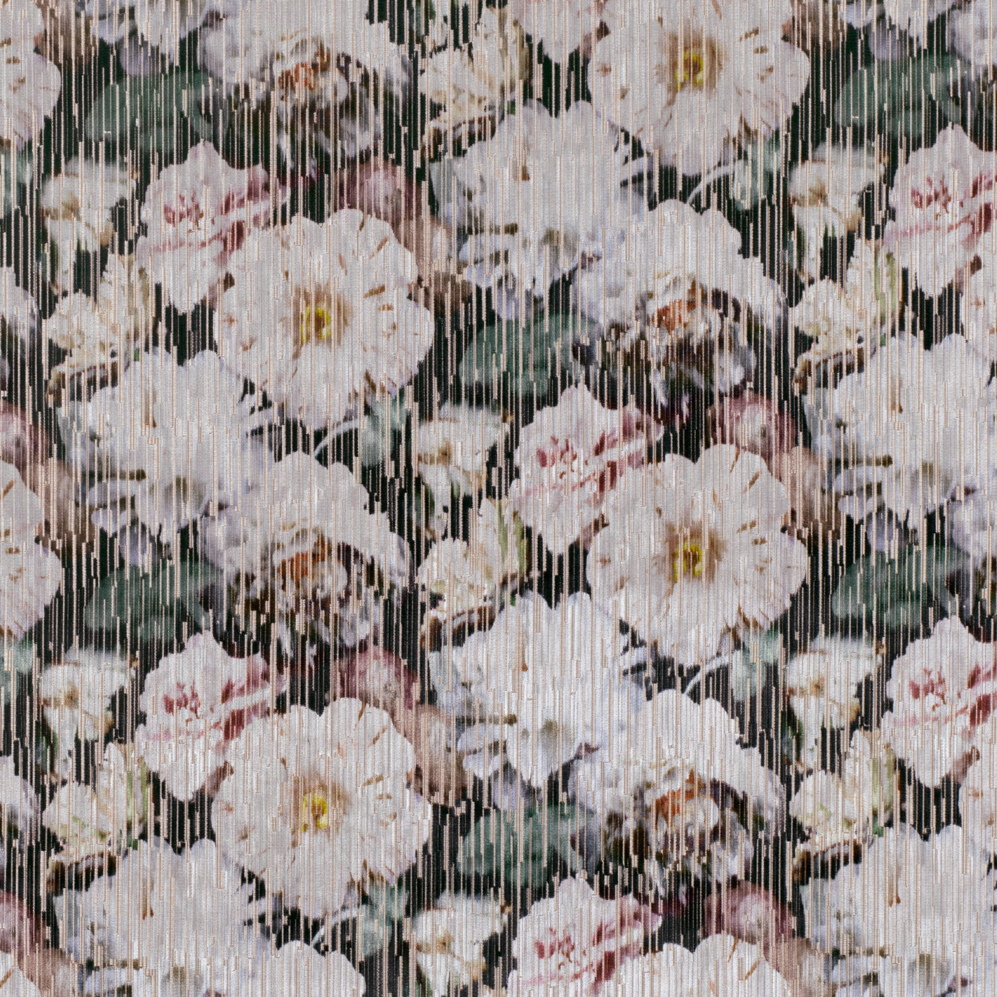 Tkanina Kaleido 01 Herbaria - Oszałamiający aksamit żakardowy prezentuje efektowny kwiatowy wzór, przeplatany błyskotkami mieniącego się metalicznego tła.