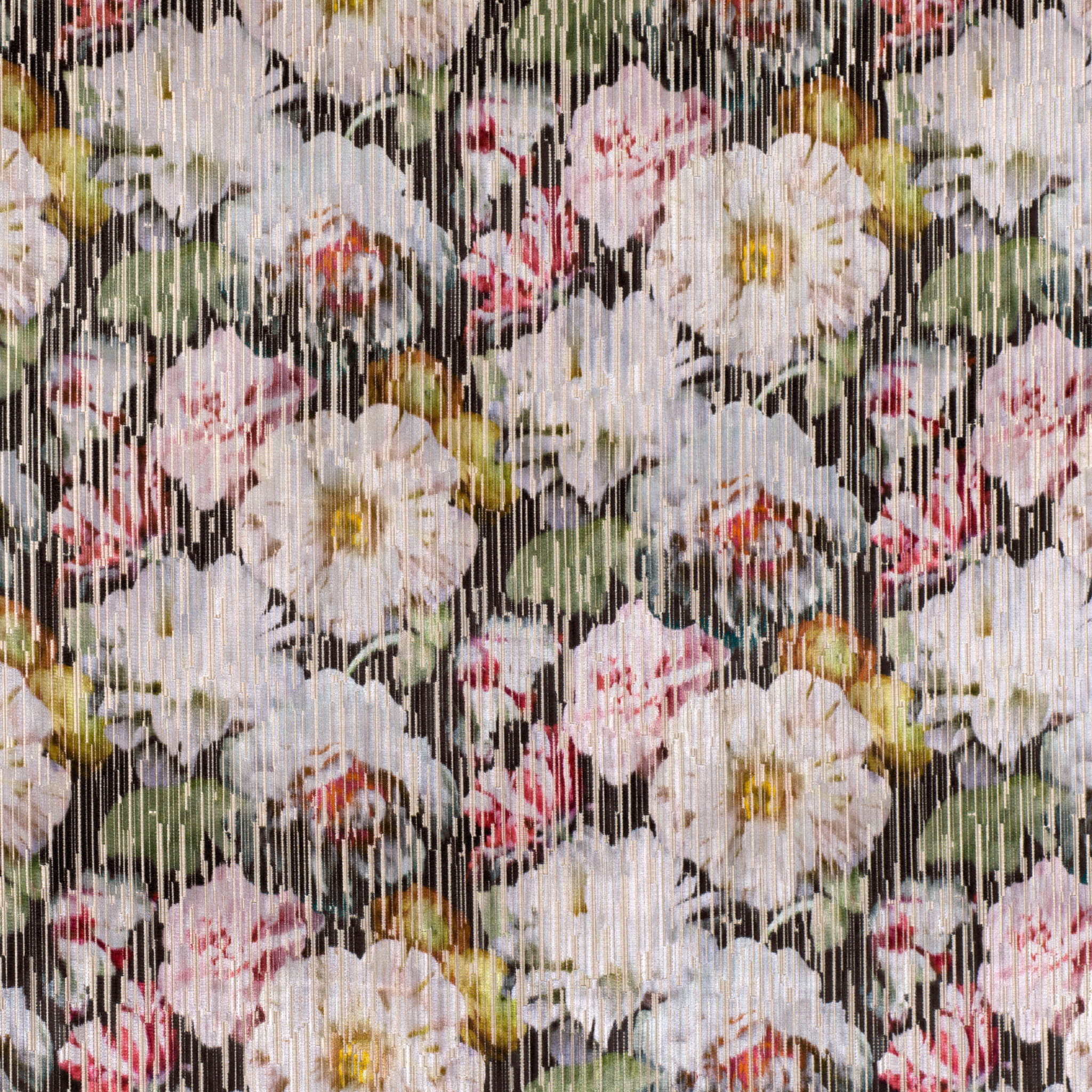 Tkanina Kaleido 02 Herbaria - Oszałamiający aksamit żakardowy prezentuje efektowny kwiatowy wzór, przeplatany błyskotkami mieniącego się metalicznego tła.
