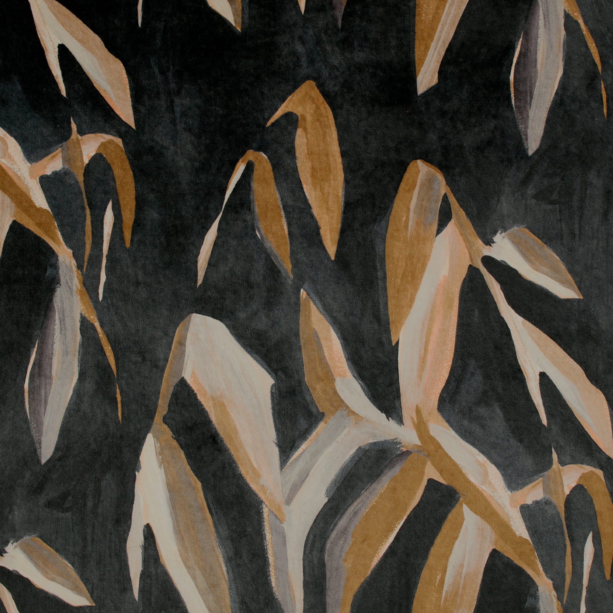 Tkanina Tabala 01 Makona - Wysokie, egzotyczne pędy bambusa zostały malowane ręcznie z ujmującą naiwnością i przeniesione na głęboki, luksusowy welur. Bogata paleta ziemistych kolorów nadaje tkaninie niezwykłego charakteru.