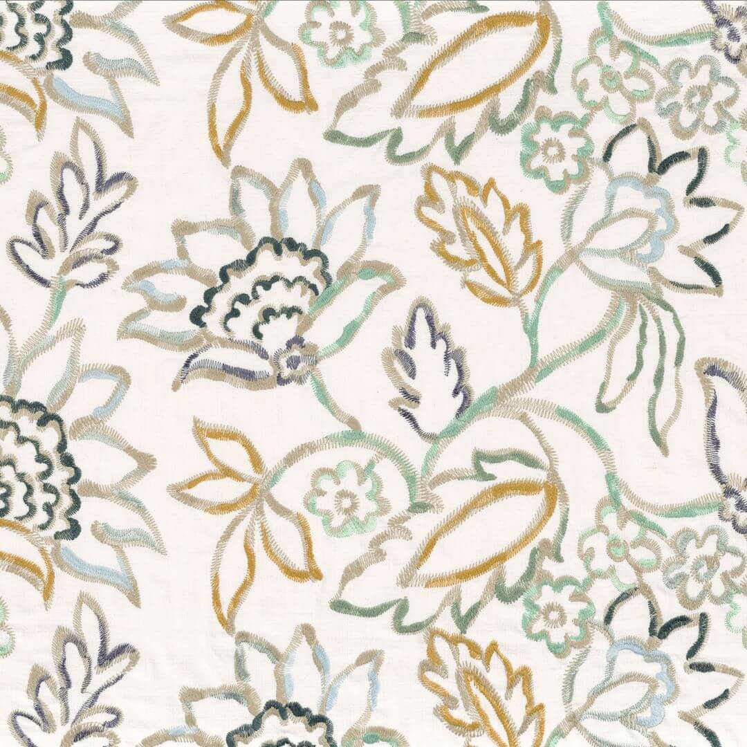 Ta tkanina o kwiatowym wzorze wywołuje piękny, błyszczący efekt wielu kolorów na jasnej bazie, bawiąc się światłem. Okazałe stylizowane kwiaty zostały malowane i następnie haftowane, dodając kolejne akcenty kolorystyczne. W efekcie przypomina ona impresjonistyczny obraz, nadając wnętrzom nowoczesny i ponadczasowy charakter. Doskonale sprawdzi się jako eleganckie zasłony, stylowe ozdobne poduszki lub rolety rzymskie. Wzór o nazwie "Aix-en-Provence" dostępny jest w czterech różnych odsłonach kolorystycznych, pochodzi z katalogu Alpilles, francuskiej marki Camengo. Ta kolekcja oferuje przepiękne tkaniny dedykowane eleganckim i stylowym wnętrzom. Połączenie roślinnych motywów i geometrycznych kształtów tworzy unikalne miejsca o francuskim charakterze. Delikatne hafty, efekt satyny, miękki aksamit i pikowane wzory dodają wnętrzom ciepłego i przytulnego charakteru. Niektóre projekty będą doskonałymi zasłonami i poduszkami, podczas gdy inne mogą służyć jako obicie pufy lub kanapy.