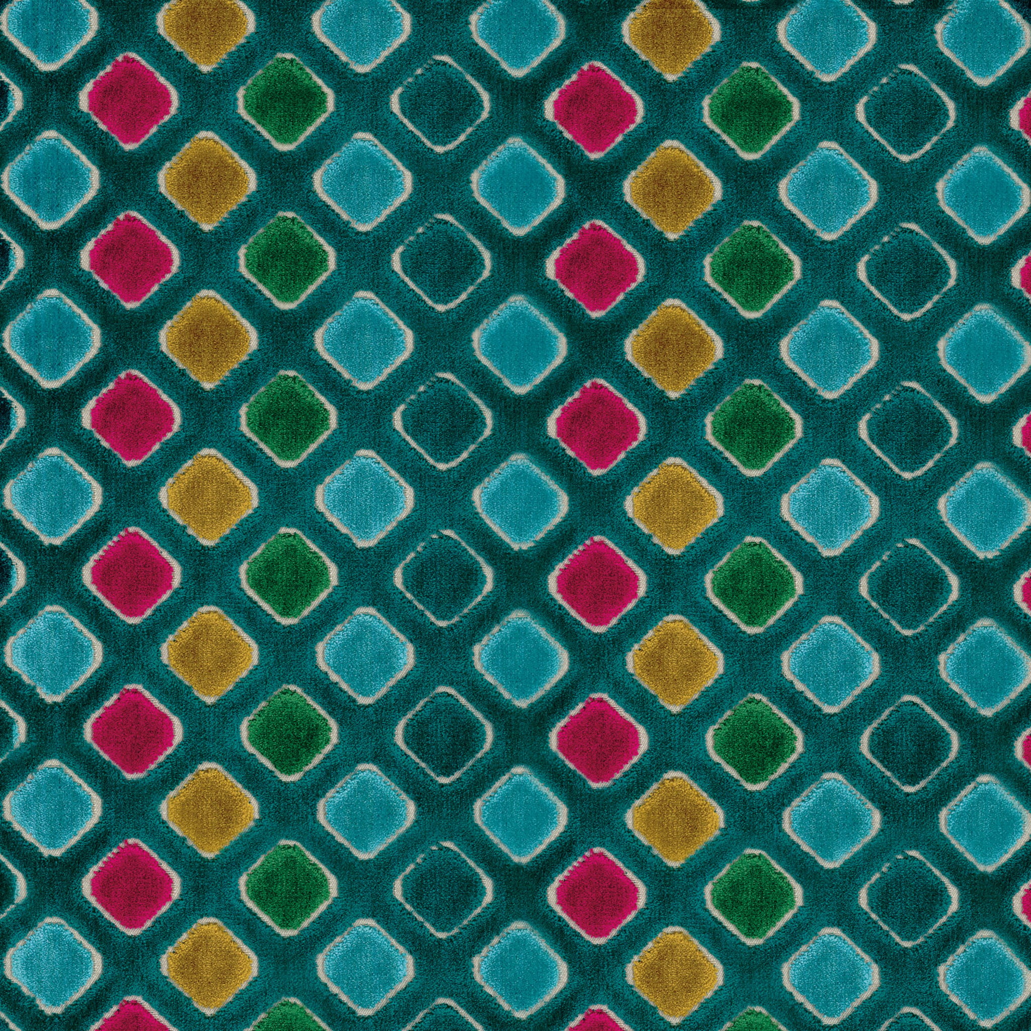 Tkanina Camengo Divine 46700261 Épopée to geometryczny aksamit o konstrukcji przypominającej plastry miodu. Ta wielobarwna kreacja emanuje rytmem i intensywnością swoich jasnych odcieni. Nadaje ona fotelom, które pokrywa, unikalnego charakteru, czyniąc z każdego z nich prawdziwe dzieło sztuki. Każdy fotel pokryty Épopée staje się niepowtarzalnym arcydziełem.