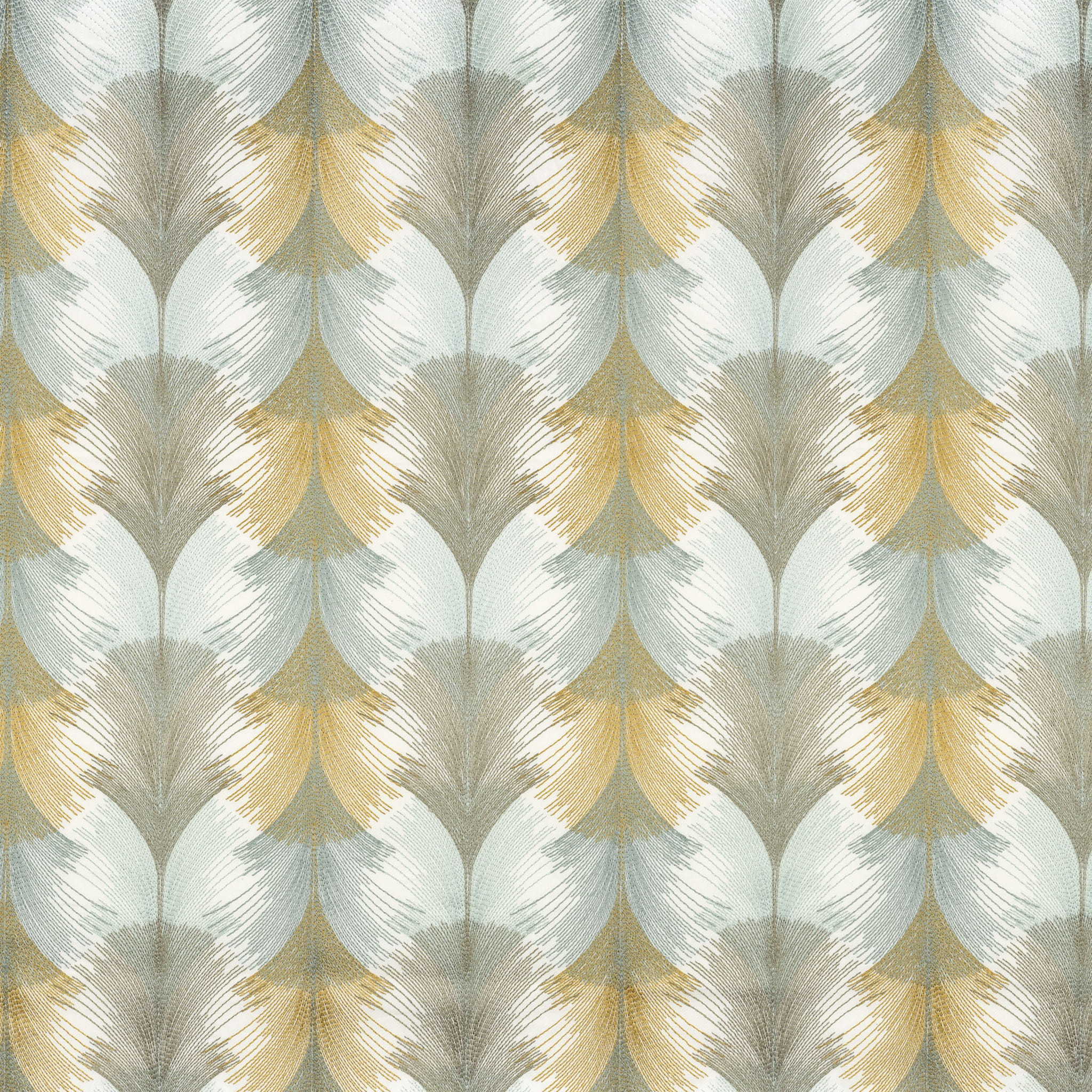 Tkanina Camengo Jade 46310237 Aude to delikatnie haftowane pióra są nałożone na siebie, tworząc regularny i naturalnie elegancki wzór przypominający upierzenie ptaka. Ta staranna praca ukazuje niesamowitą delikatność, subtelnie łącząc kolory, tworząc zmieniające się efekty, lustrzane, wyrafinowane i poetyckie. To jest jak symfonia kolorów i tekstur, która przemienia prostotę w coś wyjątkowego. Każde pióro dodaje do całości swoją unikalną nutę, tworząc harmonijną i fascynującą kompozycję.
