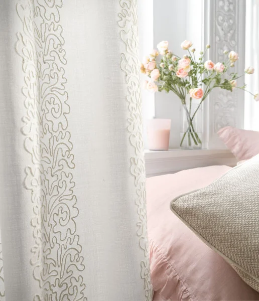 Tkanina Camengo Mademoiselle 41660208 Jeanne to delikatna nić, która rysuje stylizowane roślinne krzywe na niezwykle miękkim i giętkim lnianym materiale. Połączenie głębi i artystycznego kunsztu tej haftowanej tkaniny jest bardzo przyjemne. Ta tkanina to połączenie subtelności i wyrafinowania, które razem tworzą niepowtarzalny i porywający styl. Jest idealna dla tych, którzy cenią sobie naturalność i elegancję w swoim otoczeniu.