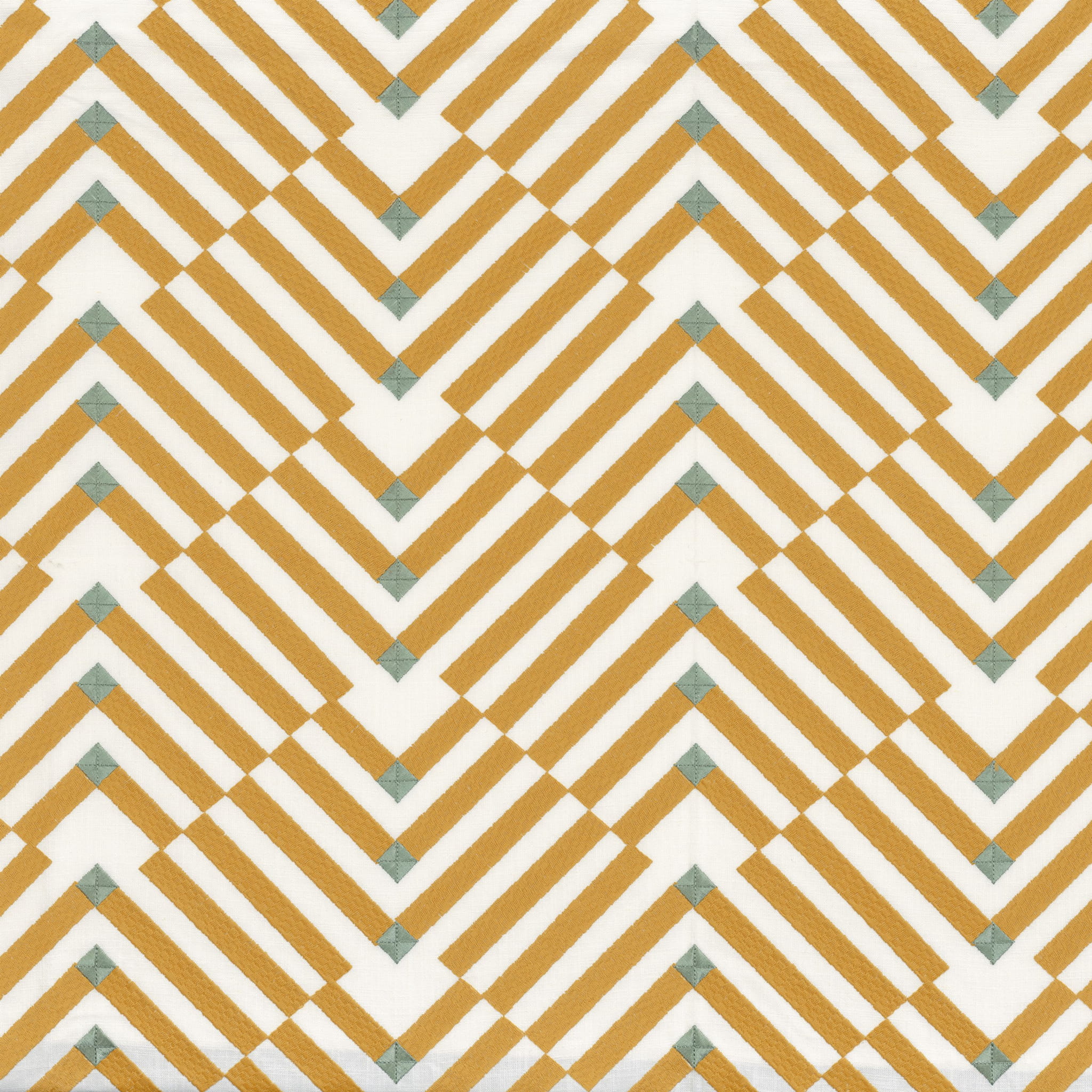 Tkanina Camengo San Francisco 46660169 Golden Gate - architektoniczna struktura tego wzoru przypomina Złotą Bramę w San Francisco. Linie są wykonane z miękkiej bawełnianej przędzy. Diamenty są haftowane w wiskozie, której migoczące akcenty wzbogacają tę kolekcję, tworząc matowe i błyszczące kontrasty.
