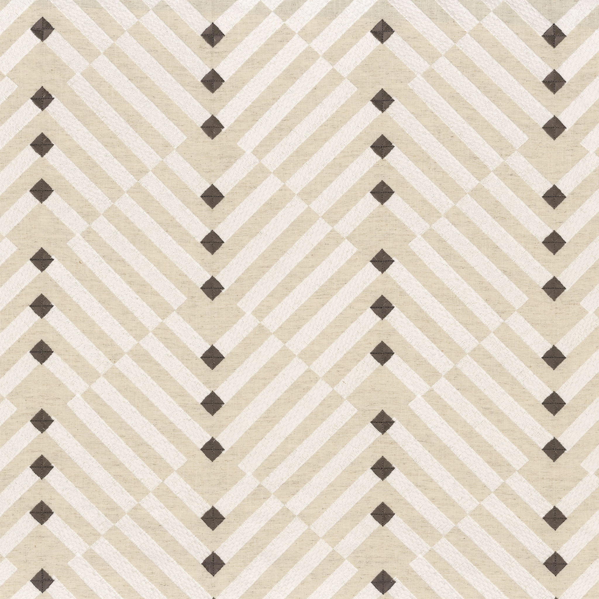 Tkanina Camengo San Francisco 46660450 Golden Gate - architektoniczna struktura tego wzoru przypomina Złotą Bramę w San Francisco. Linie są wykonane z miękkiej bawełnianej przędzy. Diamenty są haftowane w wiskozie, której migoczące akcenty wzbogacają tę kolekcję, tworząc matowe i błyszczące kontrasty.