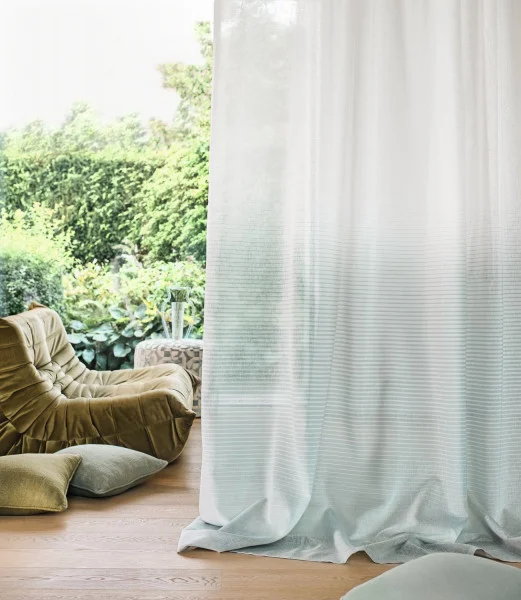 Tkanina Camengo Totem Sheers 44410115 Hupa - paski wracają do mody i zostały zaprojektowane na przekór dla woalu Hupa, jakby podążały za horyzontem. Linie zostały zaprojektowane z wykorzystaniem stopniowanej grubości, subtelnie znikając na górze tkaniny, aby przepuścić światło. Woal Hupa, tkany z recyklingowego poliestru i bawełny organicznej, dostępny jest w delikatnych kolorach: błękitnym i piaskowym beżu lub w bardziej graficznej wersji węglowej. Jest to połączenie elegancji i wygody, które tworzy unikalną i wyrafinowaną estetykę.