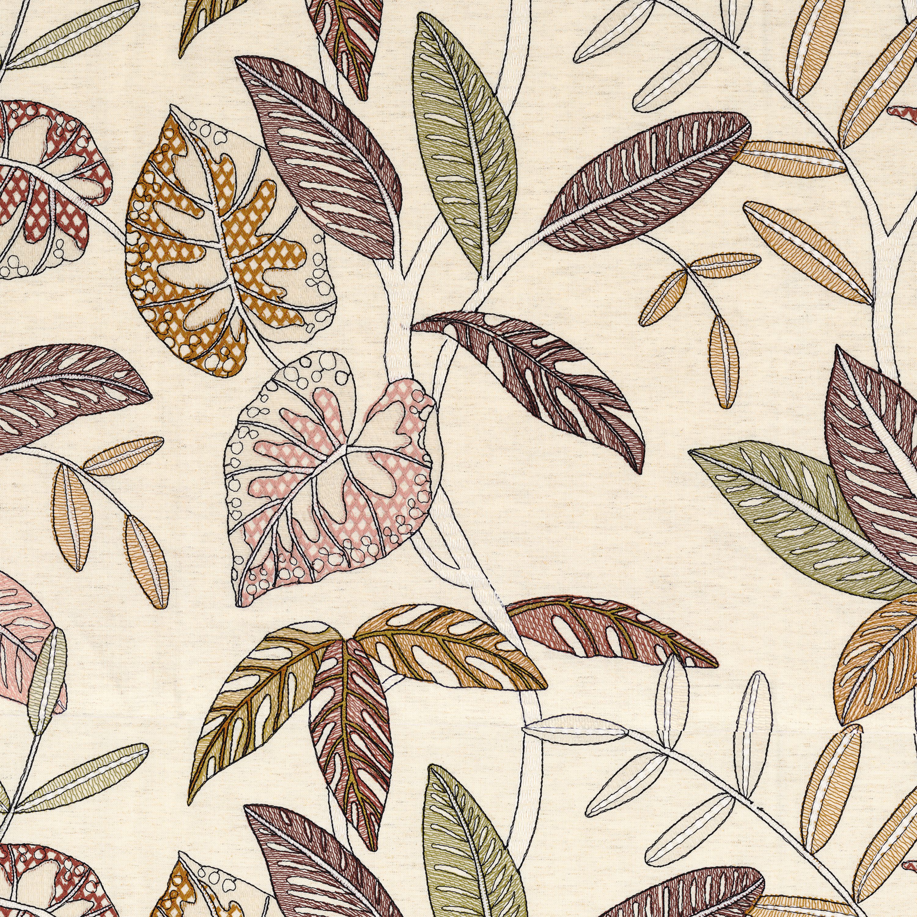 Tkanina Casamance 24440562 Guarana zachwyca tropikalnym motywem, w którym hafty oddają bujność i rytm egzotycznej przyrody. Kolorystyka i precyzja wykonania tworzą efekt luksusu i głębi. To kolekcja, która wnosi do wnętrza sztukę, naturę i zmysłową intensywność.