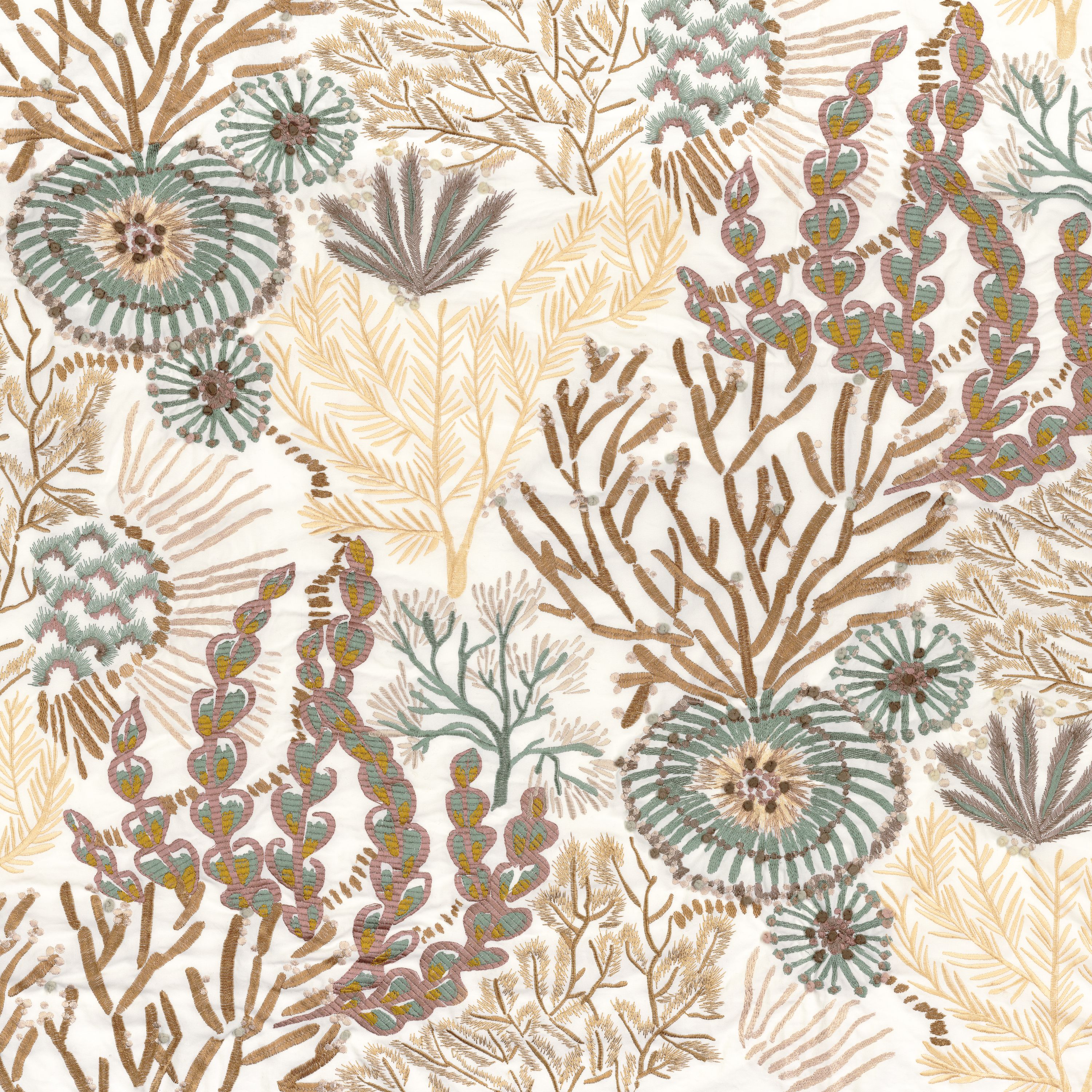 Tkanina Casamance 45260127 Moana przywołuje podwodny świat, gdzie koralowce i muszle tworzą misterną kompozycję. Haftowane detale oddają ruch wody, nadając tkaninie głębię i lekkość. Kolekcja doskonale sprawdza się w dekoracjach, które cenią naturalność i artystyczny wyraz.