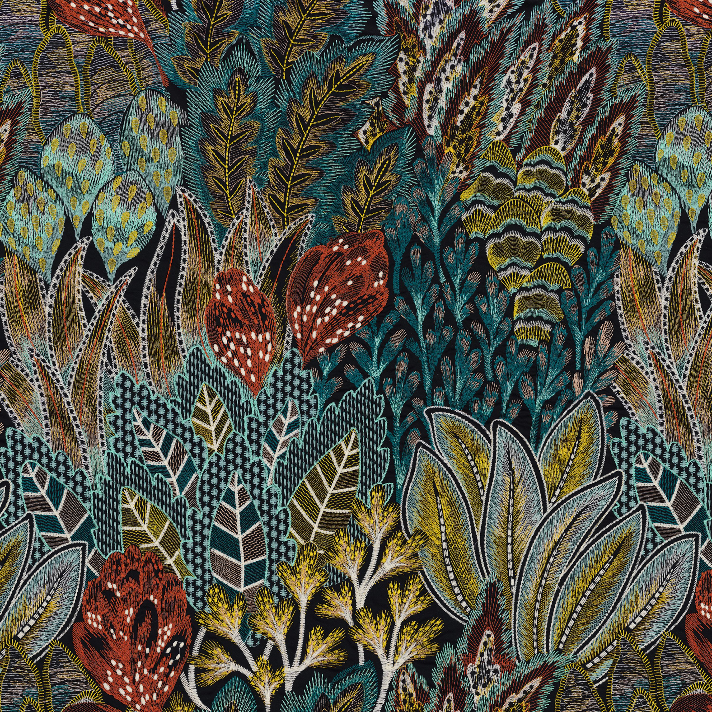 Tkanina Casamance 47540321 Salonga przywołuje rytm natury, gdzie haftowane liście poruszają się jak w tanecznym układzie. Kolory są intensywne, a struktura bogata, co nadaje tkaninie głębię i ekspresję. Kolekcja idealnie sprawdza się w aranżacjach, które cenią organiczny ruch i tekstylną elegancję.