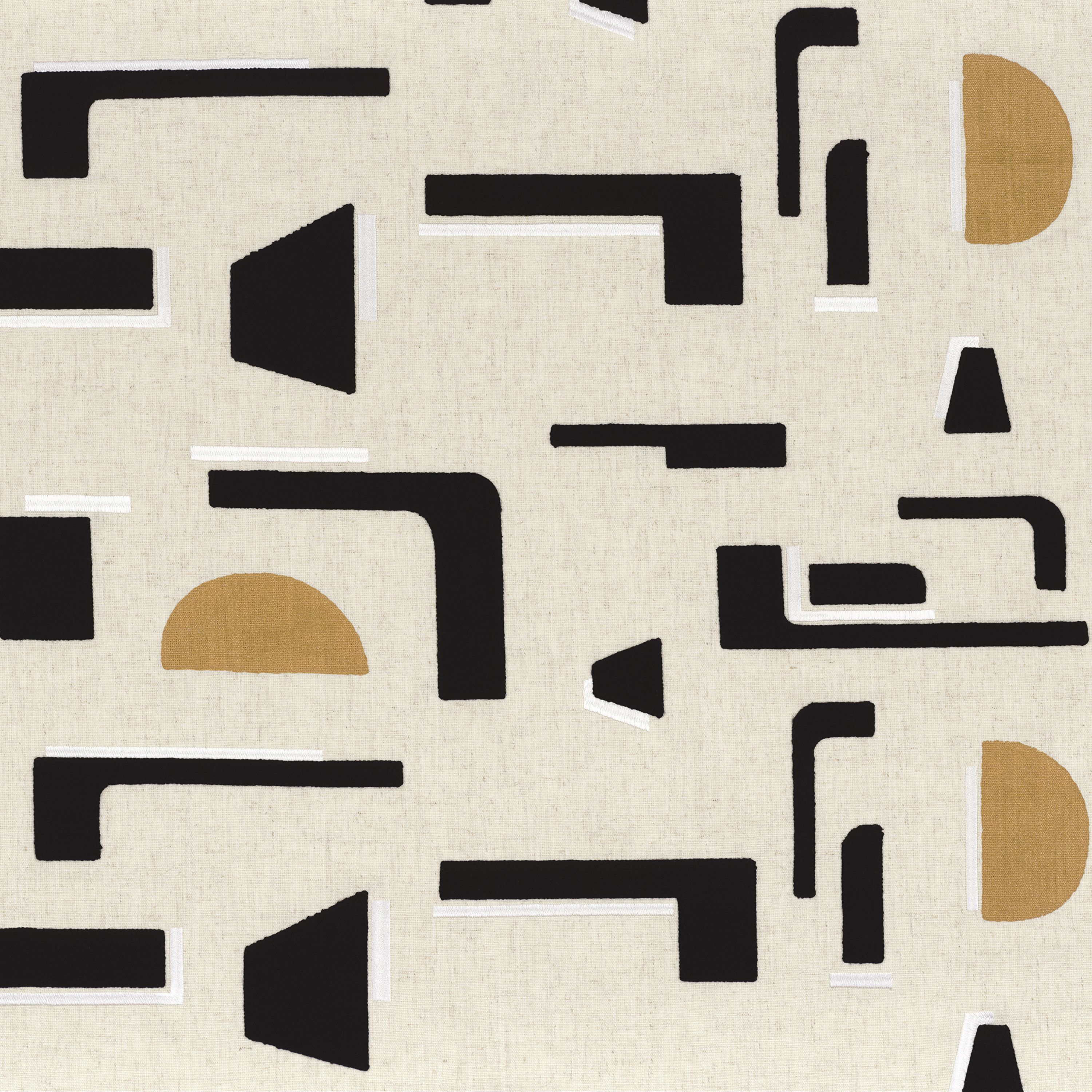 Tkanina Casamance 49160461 Isotope zachwyca graficzną precyzją i bogactwem technik, które nadają jej wyjątkowy rytm. Połączenie gęstego haftu i złoconego nadruku tworzy efekt światła i struktury. Kolekcja doskonale sprawdza się w aranżacjach, które cenią tekstylną ekspresję i dekoracyjną siłę.