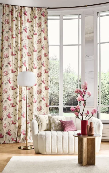 Kolekcja Magnolia od Casamance to haftowana tkanina z połyskiem, inspirowana kwiatami magnolii i dostępna w zróżnicowanej palecie kolorów.