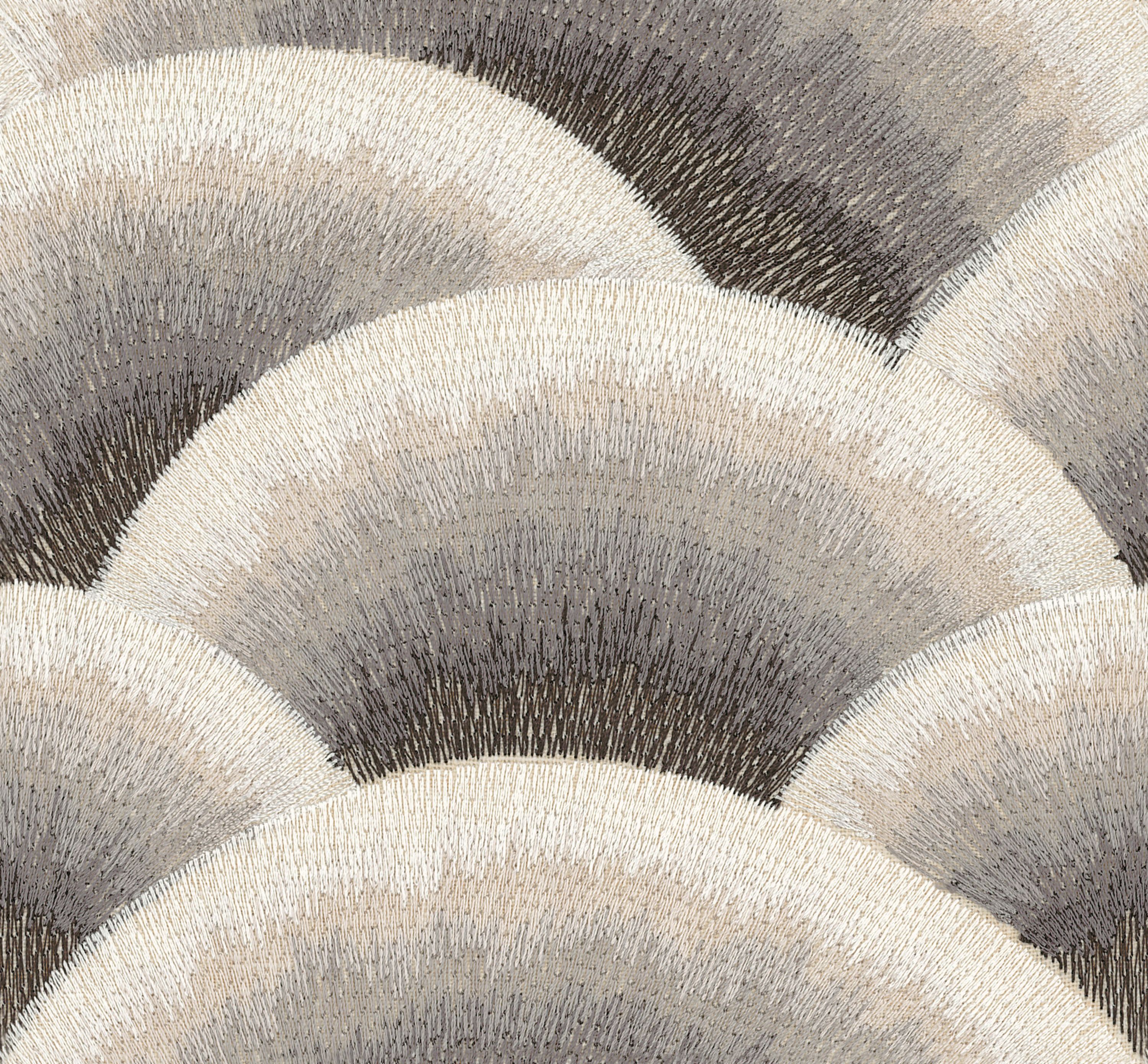 Tkanina Casamance Murmures 10150511 Arcus to haftowana tkanina inspirowana chmurami, wykonana z wiskozy o satynowym połysku. Jej monochromatyczne odcienie podkreślają subtelny charakter. Dostępna w czterech wersjach kolorystycznych, idealna na zasłony.