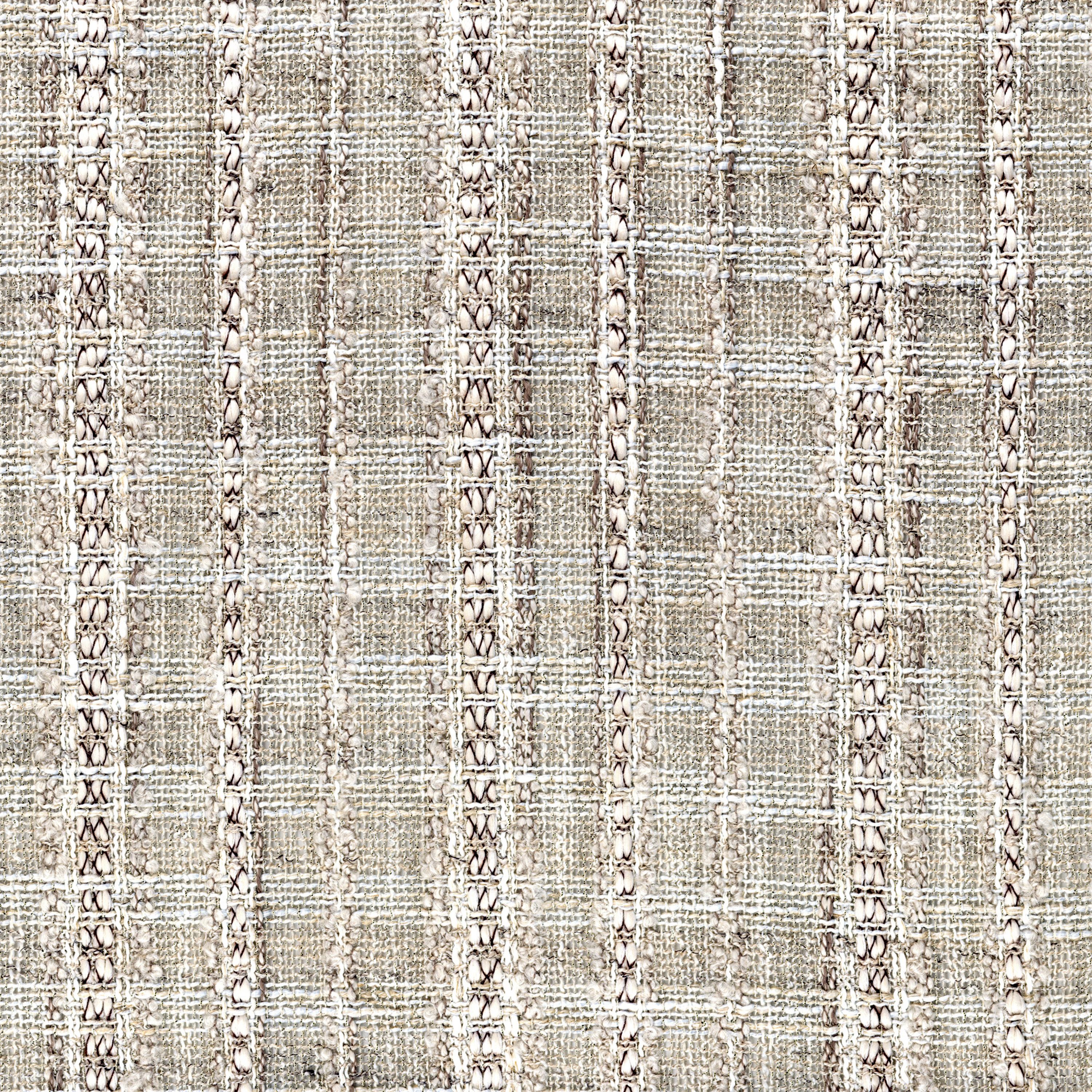 Tkanina Casamance Polychromie 46870221 Dessau to woal o podwójnej szerokości, zapewniający prywatność i subtelne filtrowanie światła. Powstał z połączenia fantazyjnych i bouclé włókien z czarną nicią, łącząc len z naturalnością wełny. Jego pionowe pasy odzwierciedlają czyste linie Bauhausu, a całość dostępna jest w trzech kolorach: stalowym, greige i kości słoniowej.