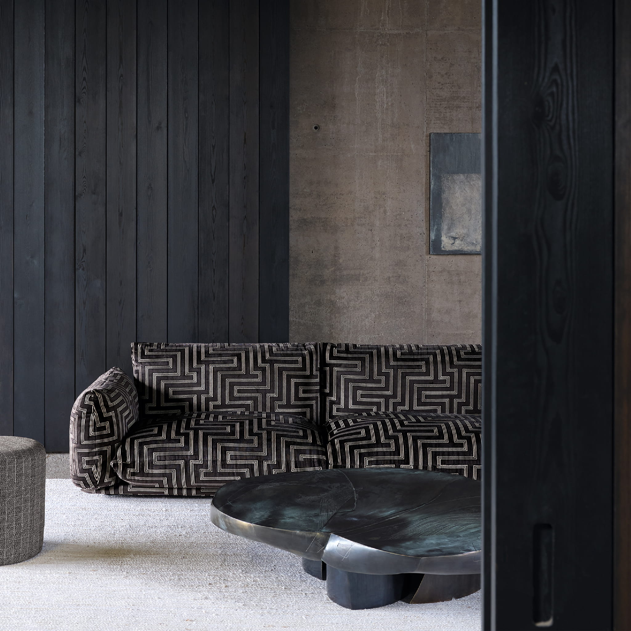 Kolekcja Chiaroscuro od Zinc to hołd dla połączenia czerni i bieli, inspirowana renesansowym terminem oznaczającym kontrast między światłem a ciemnością. Skupia się na wyciszeniu zbędnych elementów i podkreśleniu designu. Czern i biel nadają głębię tkaninom oraz wzorom. Geometryczne kształty, miękka chenille, luksusowy aksamit, grube hafty i naturalny len tworzą eklektyczną kolekcję. Chiaroscuro łączy estetykę z funkcjonalnością, wprowadzając elegancję i wyrafinowanie do wnętrz.