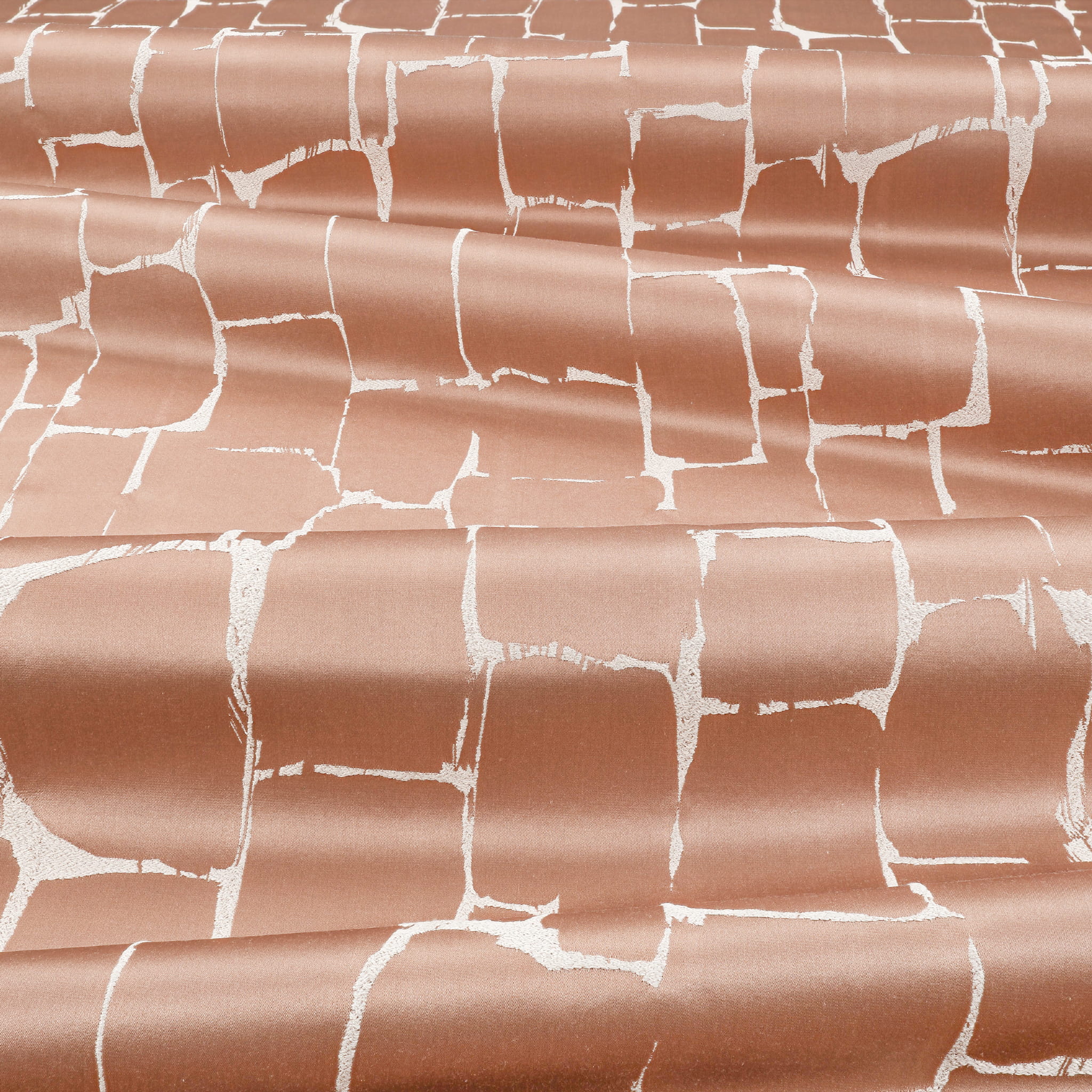 Tkanina Danxia 02 Roca to delikatnie geometryczny wzór, który nawiązuje do tekstur geologicznych. Tkany na miękkim satynie, ma piękną fakturę idealną do eleganckich zasłon. Jego subtelny design dodaje wnętrzom wyrafinowania.