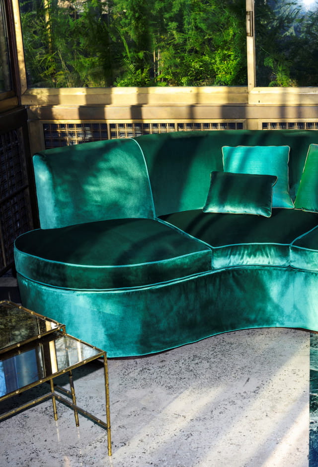 Tkanina Dedar 013 Splendido zachwyca wyjątkowo grubym włosiem - aż 4 milimetry, czyli dwa razy więcej niż standardowe tkaniny aksamitne. Dodatek jedwabiu i wiskozy zapewnia piękny połysk, bogactwo kolorów i elastyczność, dzięki czemu materiał łatwo odzyskuje swój kształt. Aksamit jest również odporny na ścieranie, co gwarantuje jego nienaganny wygląd przez długi czas.