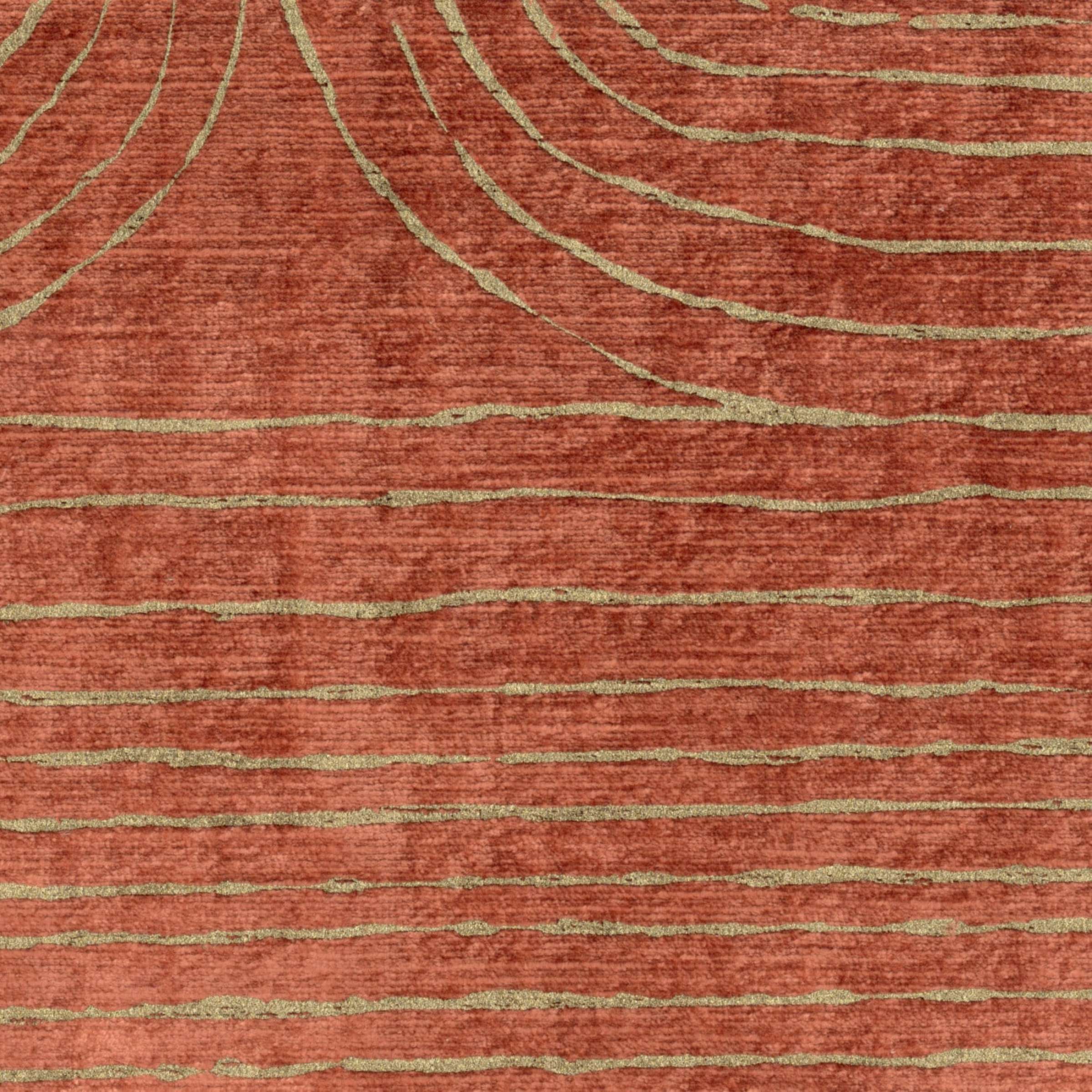 Tkanina Élitis Brera LB 978 36 Donatello to kolekcja gdzie ramowe nadruki na welwie cechują się falistymi, nieregularnymi liniami, które przywodzą na myśl ręcznie robione detale. Metalliczny efekt farby dodaje im nowoczesnego, dynamicznego wyrazu. Całość tworzy unikalną kompozycję, łącząc tradycyjne rzemiosło z artystycznym designem.