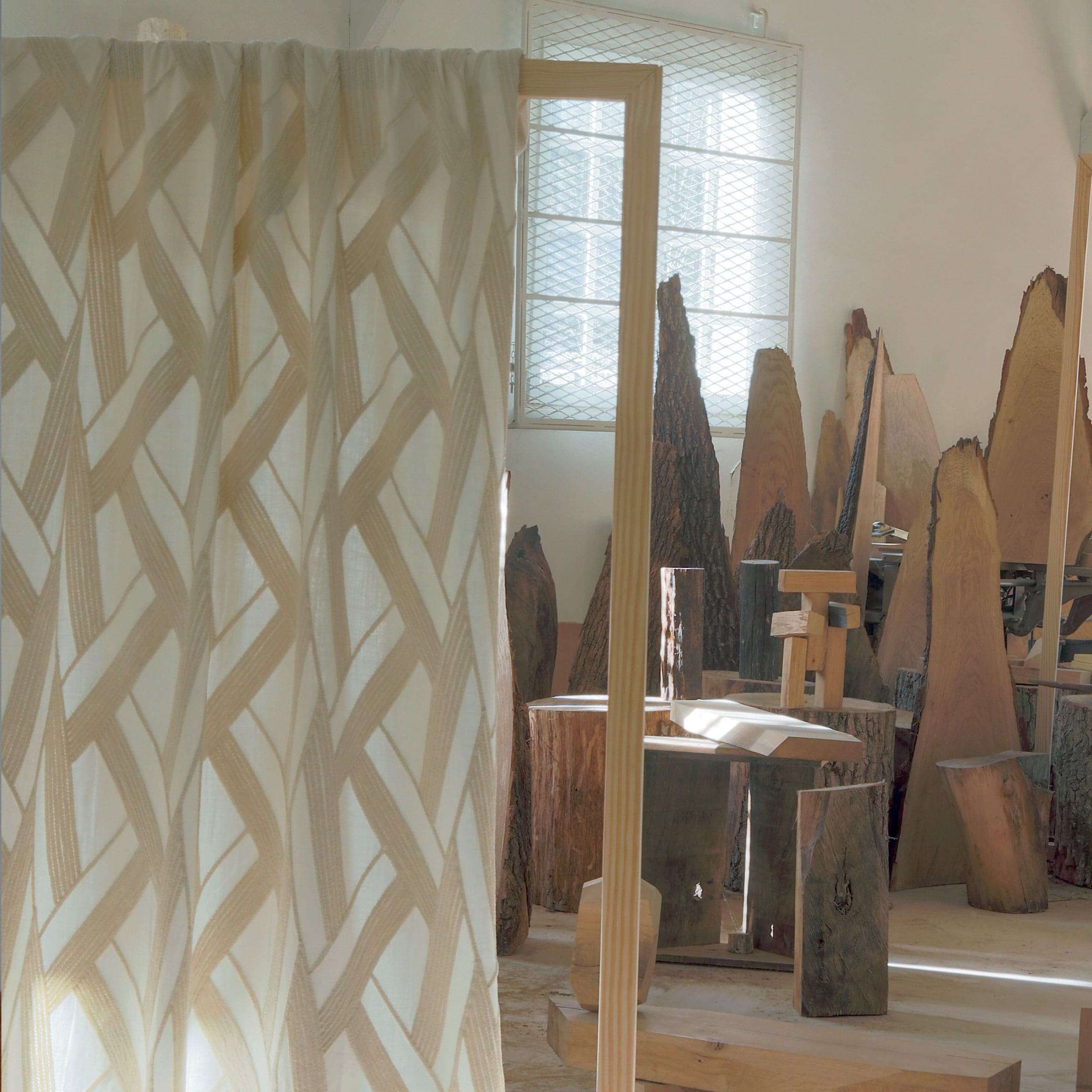 Tkanina Élitis Expression LZ 880 01 Rencontre zaprasza nas do artystycznego świata, gdzie światło oświetla formy z gipsu, kamionki i marmuru, tworząc magiczną atmosferę. W tym otoczeniu ręce twórców rzeźbią materiał, a wyobraźnia prowadzi technikę, przekształcając materiały świata w unikalne tkaniny. Minimalistyczna cisza pozwala poczuć harmonię niewidzialnych wibracji i subtelność rzemiosła.