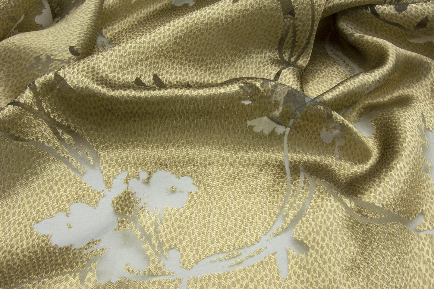 Tkanina Fischbacher 1819 103 Ramage to tkanina o kwiatowym wzorze z metalicznym wyglądem, tworząca elegancki efekt. Stylizowane kwiaty i liście nadają jej wyjątkowy charakter. Kolekcja dostępna jest w sześciu metalicznych kolorach, które podkreślają jej luksusowy wygląd.