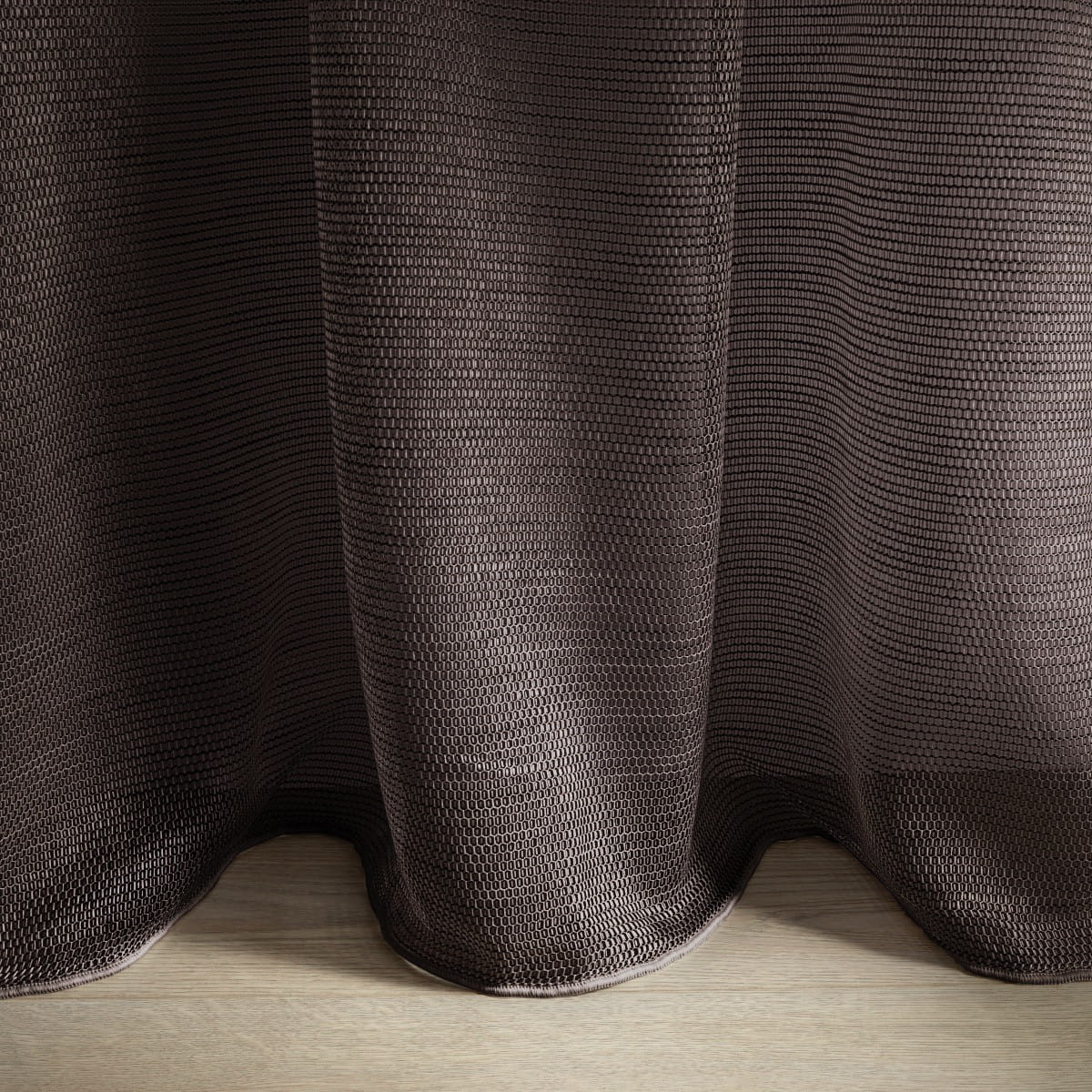 Kolekcja Metal od Fischbacher 1819 to trójwymiarowa zasłona typu leno od podłogi do sufitu, o strukturze przypominającej plaster miodu. Czarna nitka osnowy przeplatana z wątkiem podkreśla trójwymiarowy efekt. Dostępna w 8 kolorach.