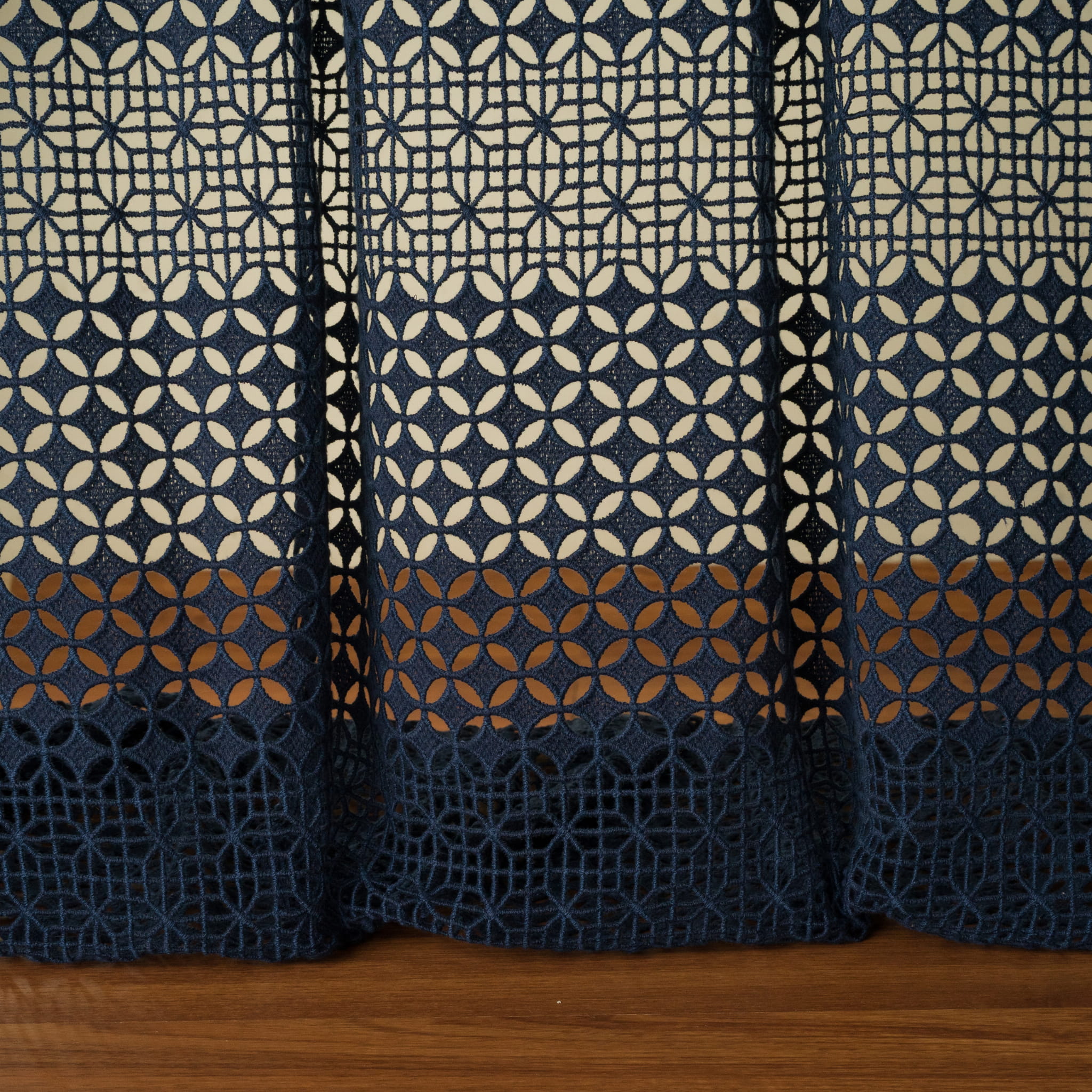 Kolekcja GLORIOSA od Fischbacher 1819 to niezwykle elegancka koronka, składająca się z dwóch wzorów haftów, ułożonych w poziome pasy o szerokości 17 cm. Jeden wzór jest liniowy i filigranowy, drugi to uzupełniający geometryczny wzór. Tkanina o podwójnej szerokości, zaleca się układanie zasłon na podłodze ze względu na lekko elastyczną strukturę materiału. GLORIOSA dostępna jest w monochromatycznej palecie 4 kolorów, co dodaje jej klasy i wyrafinowania.