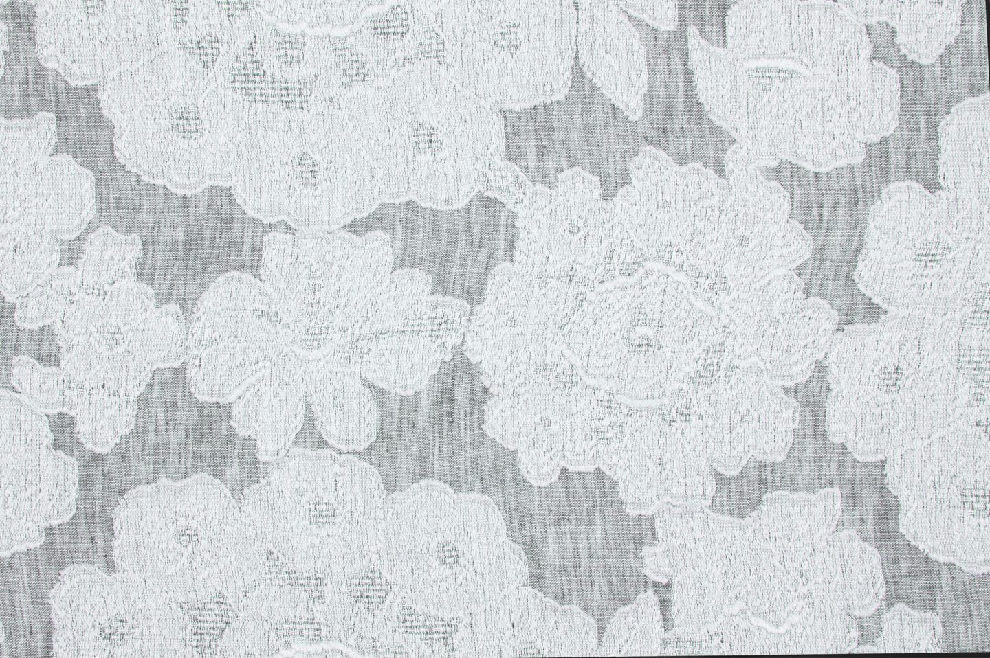 Tkanina Fischbacher 1819 305 Margarita sięgająca od podłogi do sufitu, wykorzystuje technikę clip cord, która podkreśla precyzyjnie przycięte nitki wokół kwiatów. Miękka mieszanka lnu i bawełny występuje w bieli oraz w kontrastowych barwach. Różnorodne sploty tworzą delikatne wzory stokrotek, dodając wnętrzom subtelnego uroku.