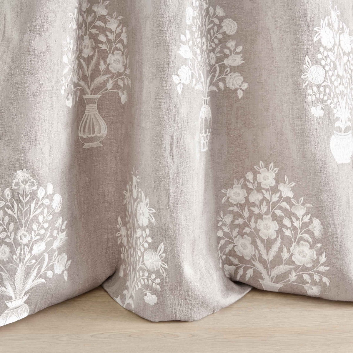 Kolekcja Epoque od Fischbacher 1819 to haft kwiatowy na ciężkiej tkaninie żakardowej z wzorem patyny, wykonanej z mieszanki bawełny i lnu. Haft bieli na bazowej tkaninie dostępny w kolorach gołębim szarym, naturalnym lnie i kremowym. Idealna do zasłon i lekkiej tapicerki, kolekcja ta łączy klasyczny urok z elegancją.
