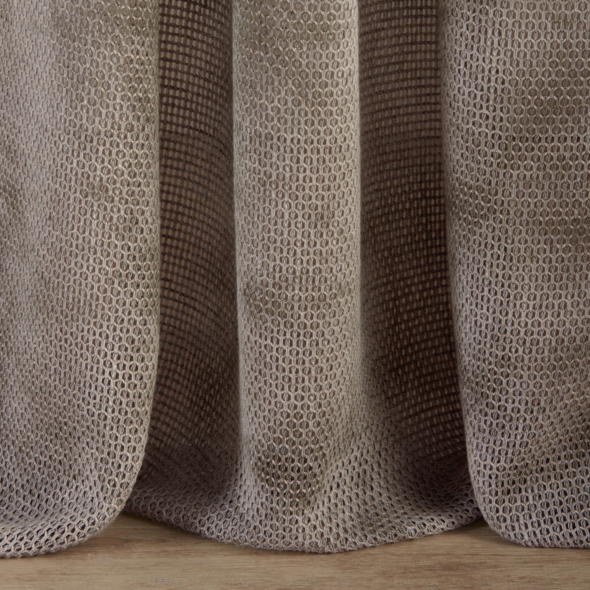 Tkanina Fischbacher 1819 504 Sogno to zasłonowa tkanina o podwójnej szerokości, półprzezroczysta, z grubą strukturą przypominającą plaster miodu i melanżowym wyglądem wełny. Metaliczne nici dodają subtelnych, eleganckich akcentów, a technika tkania marquisette zapewnia wytrzymałość i odporność na przesuwanie. Każdy metr tkaniny ma unikalne, żywe odcienie, dostępne w czterech stonowanych, jasnych kolorach.