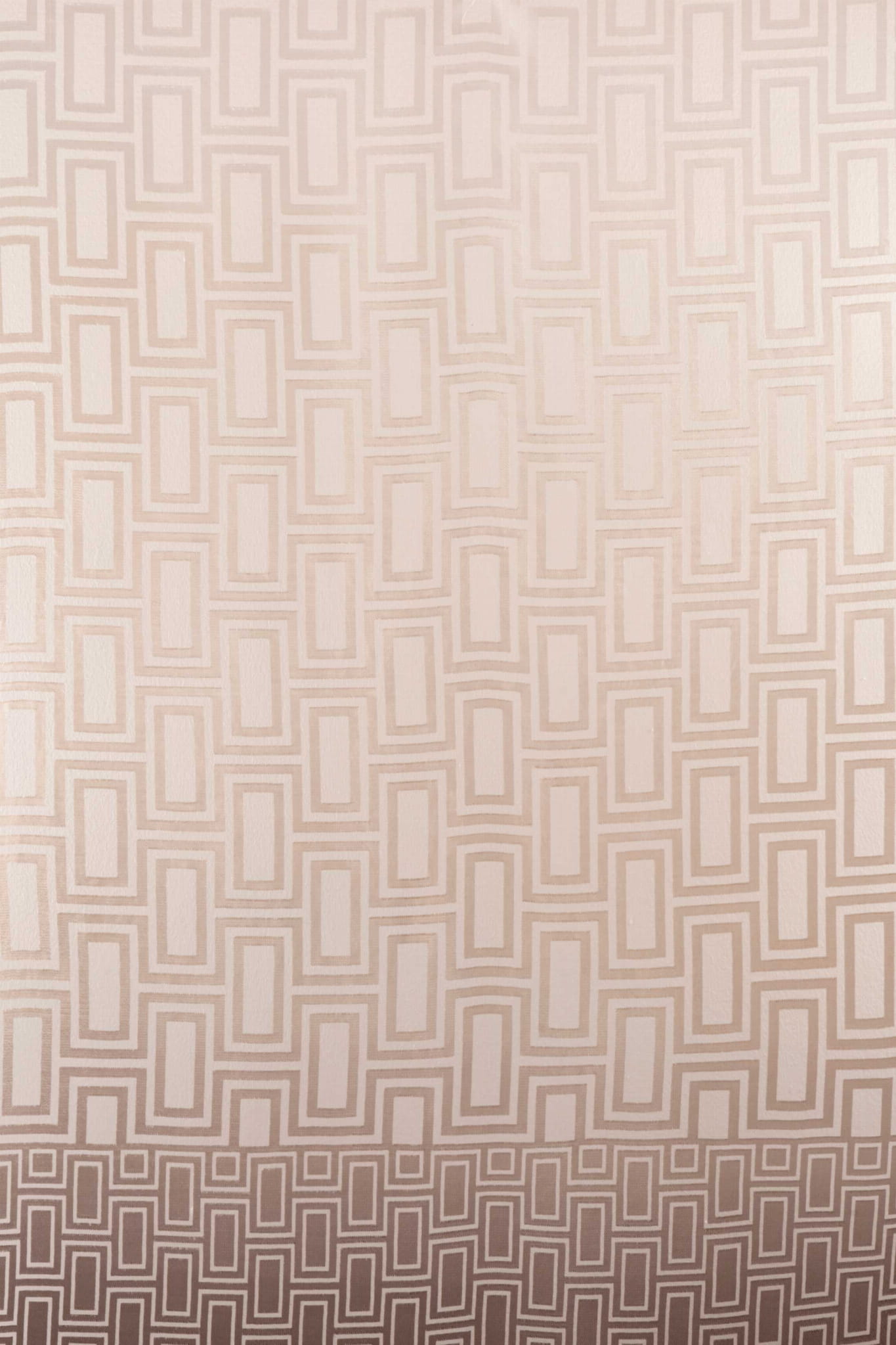 Tkanina Fischbacher 1819 607 Nairobi to tkanina typu burnout, rozciągająca się od podłogi do sufitu, z geometrycznym wzorem i trójkolorowym gradientem. Wytrawianie i farbowanie przy użyciu nowoczesnych technik nadają zasłonie wyrazistości. Paleta kolorów jest ciemna i retro, składająca się z czterech wyrazistych kombinacji.