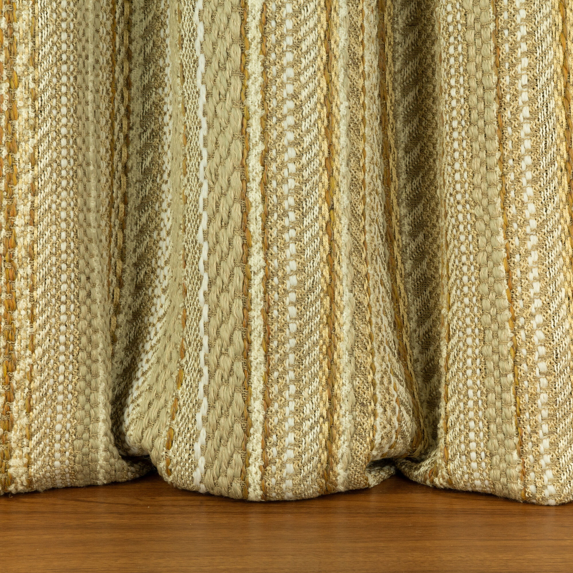 Tkanina Fischbacher 1819 707 Qashqai o podwójnej szerokości charakteryzuje się bogatą teksturą, która przypomina tradycyjne, ręcznie tkane materiały nomadów Qashqai. Grube, luźno skręcone nici wątku nadają tkaninie wygląd i charakter ręcznej roboty. Dzięki temu zasłony z tej kolekcji wprowadzają do wnętrz unikalny klimat inspirowany tradycją.