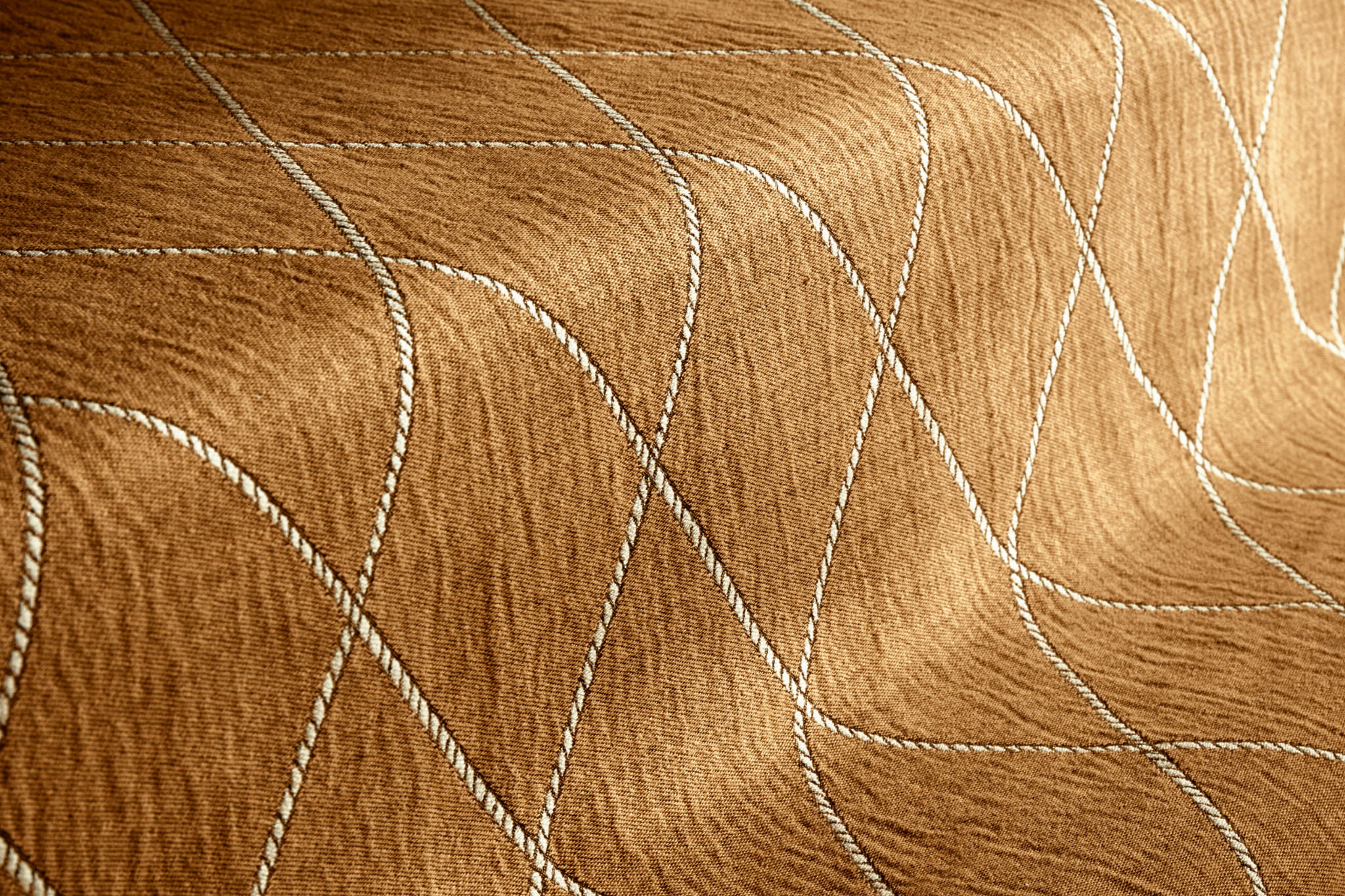 Tkanina Fischbacher 1819 903 Capri Palazzo A Mare - Ten marynistyczny wzór charakteryzuje się dużymi rombami żakardowymi, wyróżniającymi się przeplataniem osnowy i wątku. Białe kontury rombów tworzą efekt przypominający liny o niemal trójwymiarowym wyglądzie. Dostępny w pięciu kolorach, dodaje wnętrzom wyrafinowanego charakteru.