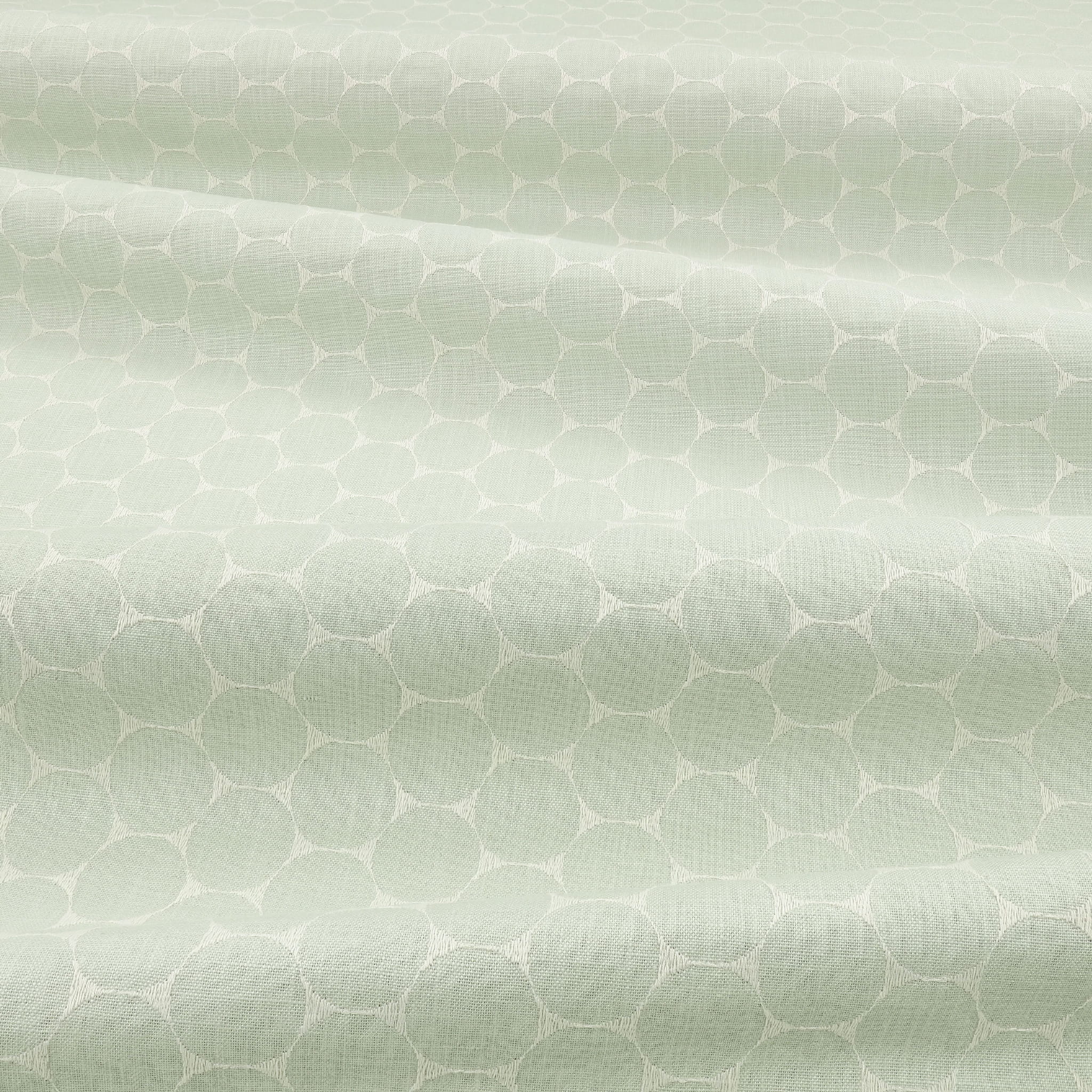 Tkanina Hana 05 Enso to wzór obejmujący proste haftowane kontury przylegających do siebie kół na miękkiej wiskozowej tkaninie lnianej, który ma ponadczasowego ducha i atrakcyjną, dotykową jakość. Wzór ten dodaje wnętrzom subtelnej elegancji i klasy. Dzięki swojej prostocie i wyrafinowaniu, Enso jest idealnym wyborem do nowoczesnych aranżacji.