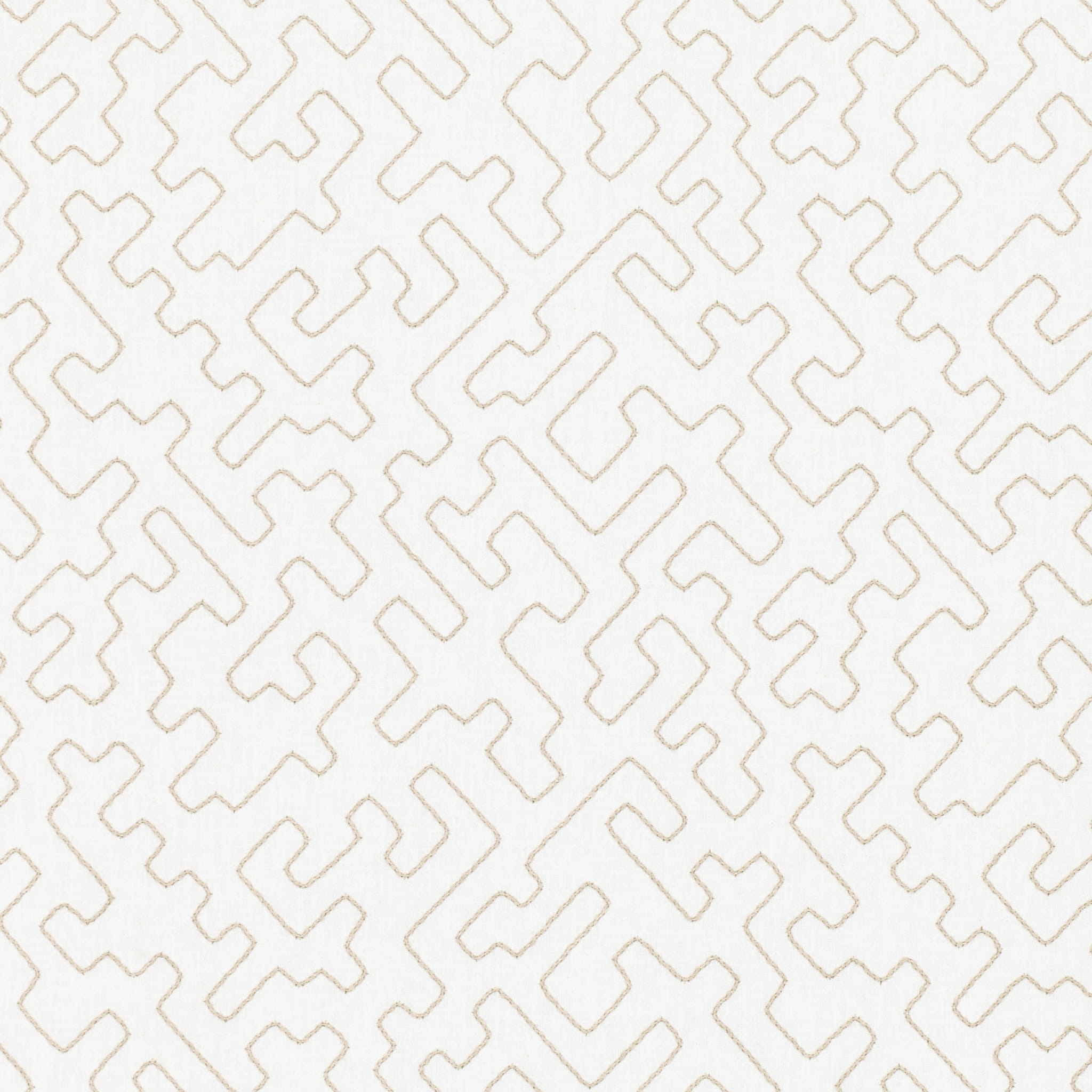 Tkanina Huari 01 Asante - Prosta haftowana kordelka tworzy labirynt liniowych kształtów na całej powierzchni tkaniny. Ten minimalistyczny wzór dodaje subtelnej elegancji każdemu wnętrzu. Idealnie komponuje się z nowoczesnymi aranżacjami.