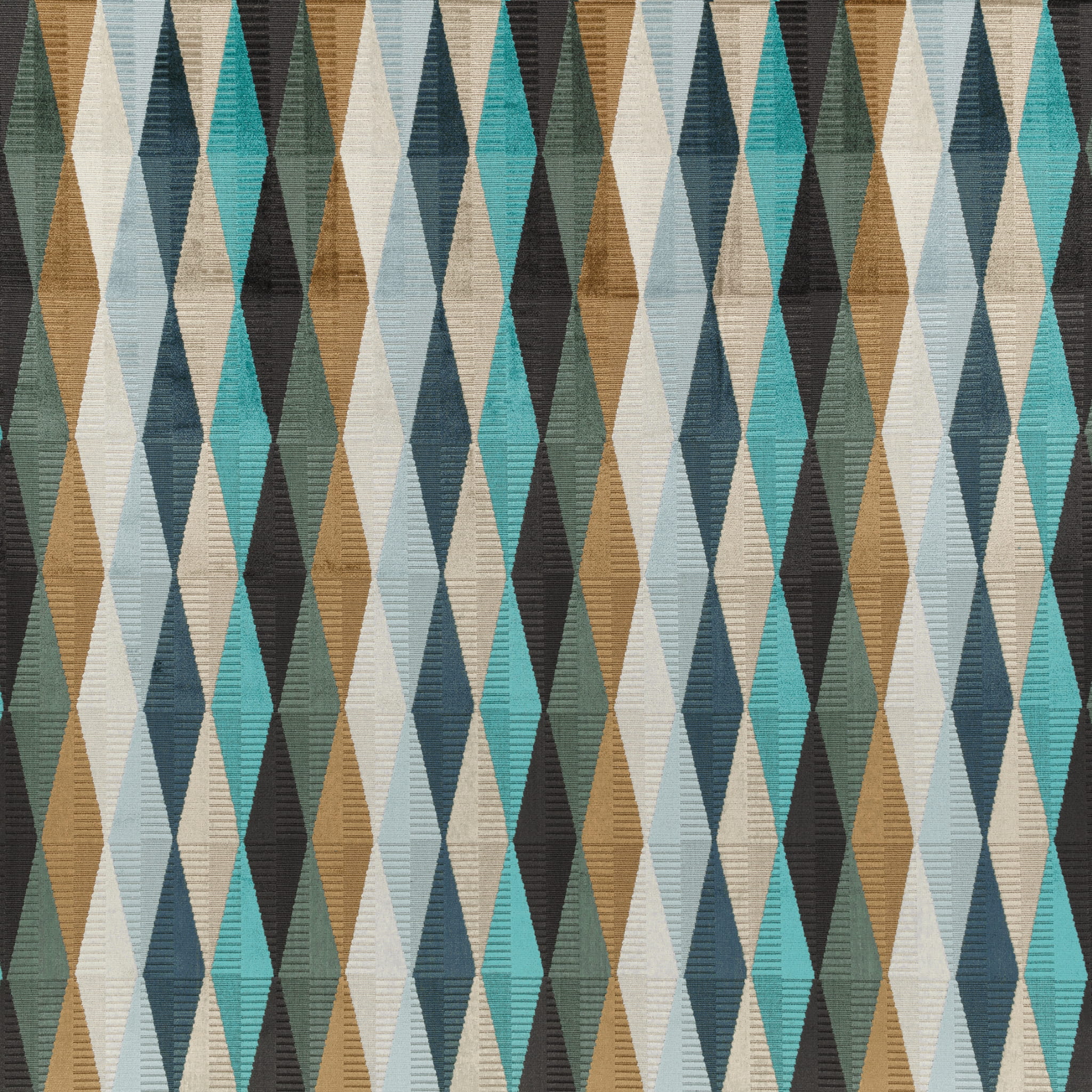 Tkanina Katori 02 Arzu to odważny geometryczny wzór diamentu z zabawnymi, schodkowymi detalami. Ten luksusowy welur w wersji ciętej i nietętej dostępny jest w wielu żywych i pięknych kolorach. Doskonały wybór do stworzenia nowoczesnych i pełnych energii wnętrz.