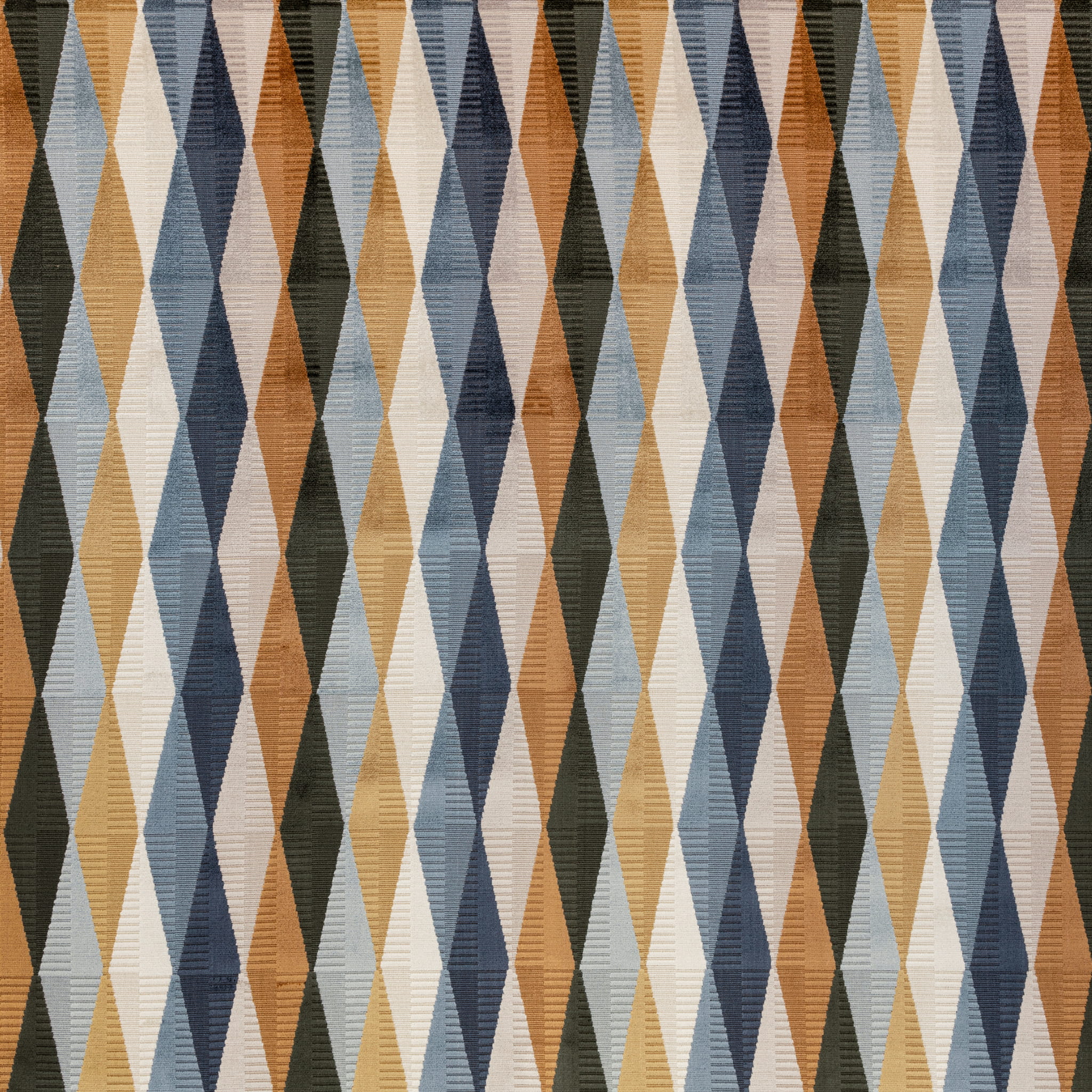 Tkanina Katori 03 Arzu to odważny geometryczny wzór diamentu z zabawnymi, schodkowymi detalami. Ten luksusowy welur w wersji ciętej i nietętej dostępny jest w wielu żywych i pięknych kolorach. Doskonały wybór do stworzenia nowoczesnych i pełnych energii wnętrz.