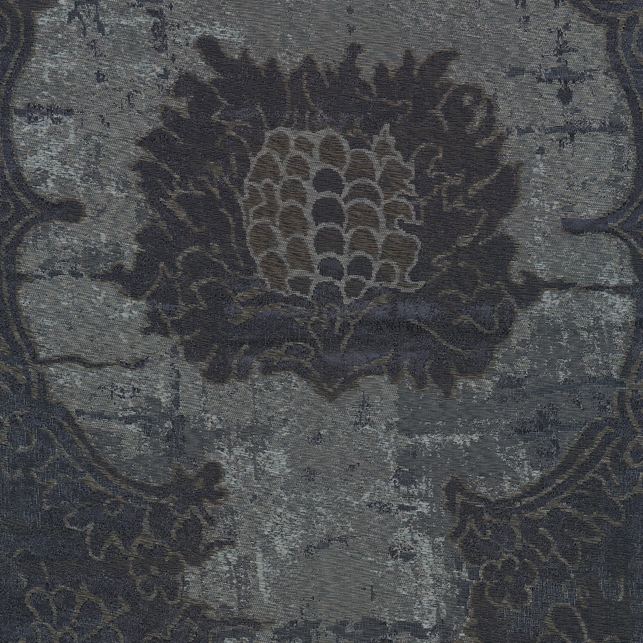 Kolekcja Kvadrat 0001 Mica to elegancka tkanina o klasycznym charakterze i wyrafinowanym wyglądzie, inspirowanym postarzaną fakturą powierzchni. Dzięki połączeniu jedwabiu, lnu i bawełny zyskuje miękkość i szlachetną głębię. Subtelnie wpisuje się w estetykę stylu vintage. Na tle o nieregularnej strukturze widoczne są szeroko rozmieszczone wzory medalionów otoczonych motywami kwiatowymi. Wzór przyciąga uwagę dekoracyjnością i bogatą kompozycją. Tworzy harmonijny rytm na tle o historycznym charakterze.