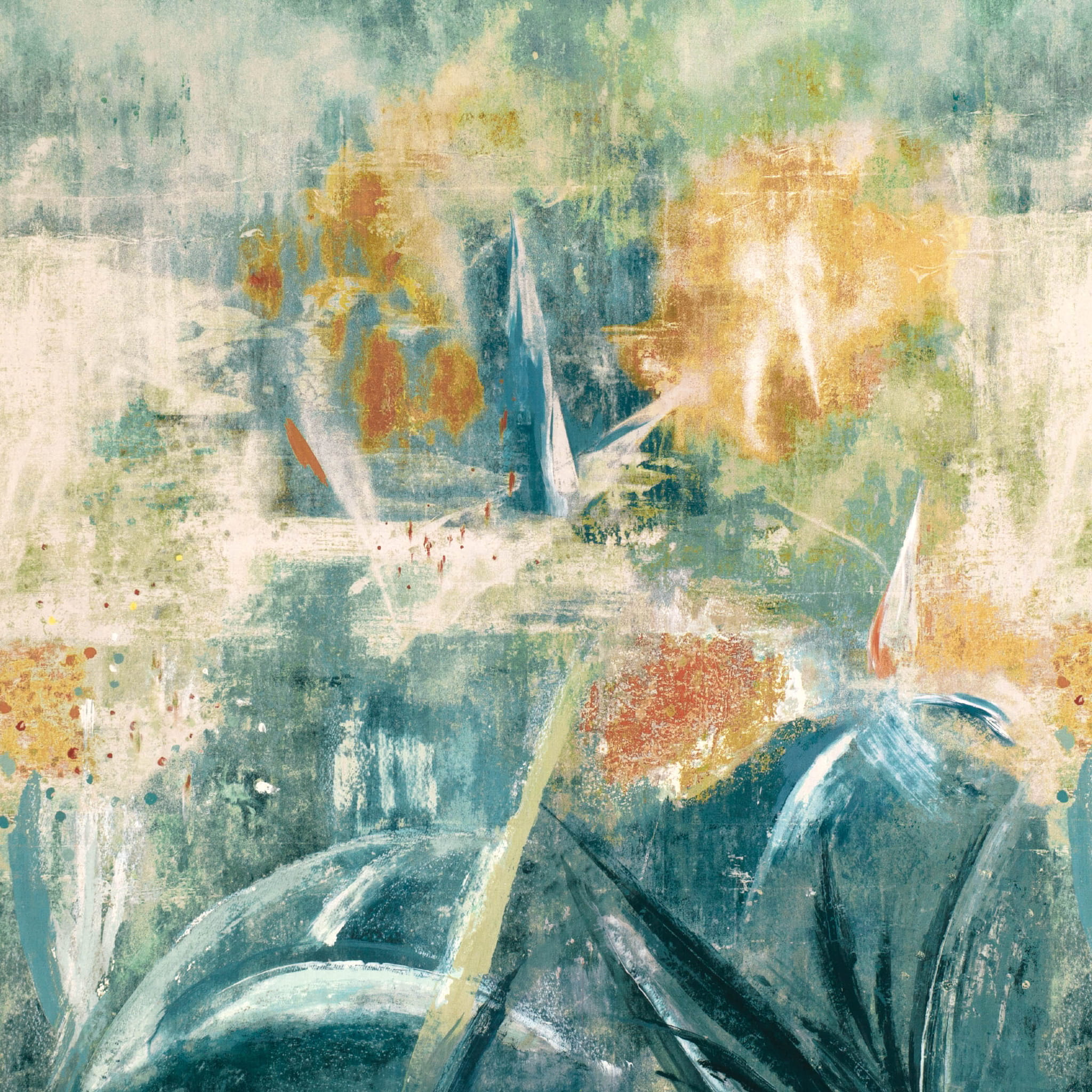 Tkanina Ostara 01 Hothouse - Ten żywy nadruk przedstawia abstrakcyjną scenę szklarniową malowaną energicznymi pociągnięciami pędzla, uchwycając dziką, spontaniczną naturę rosnących roślin. Wzór ten dodaje wnętrzom energii i wyrazistości. Idealny do wnętrz, które potrzebują odrobiny egzotyki i wyrazistości.