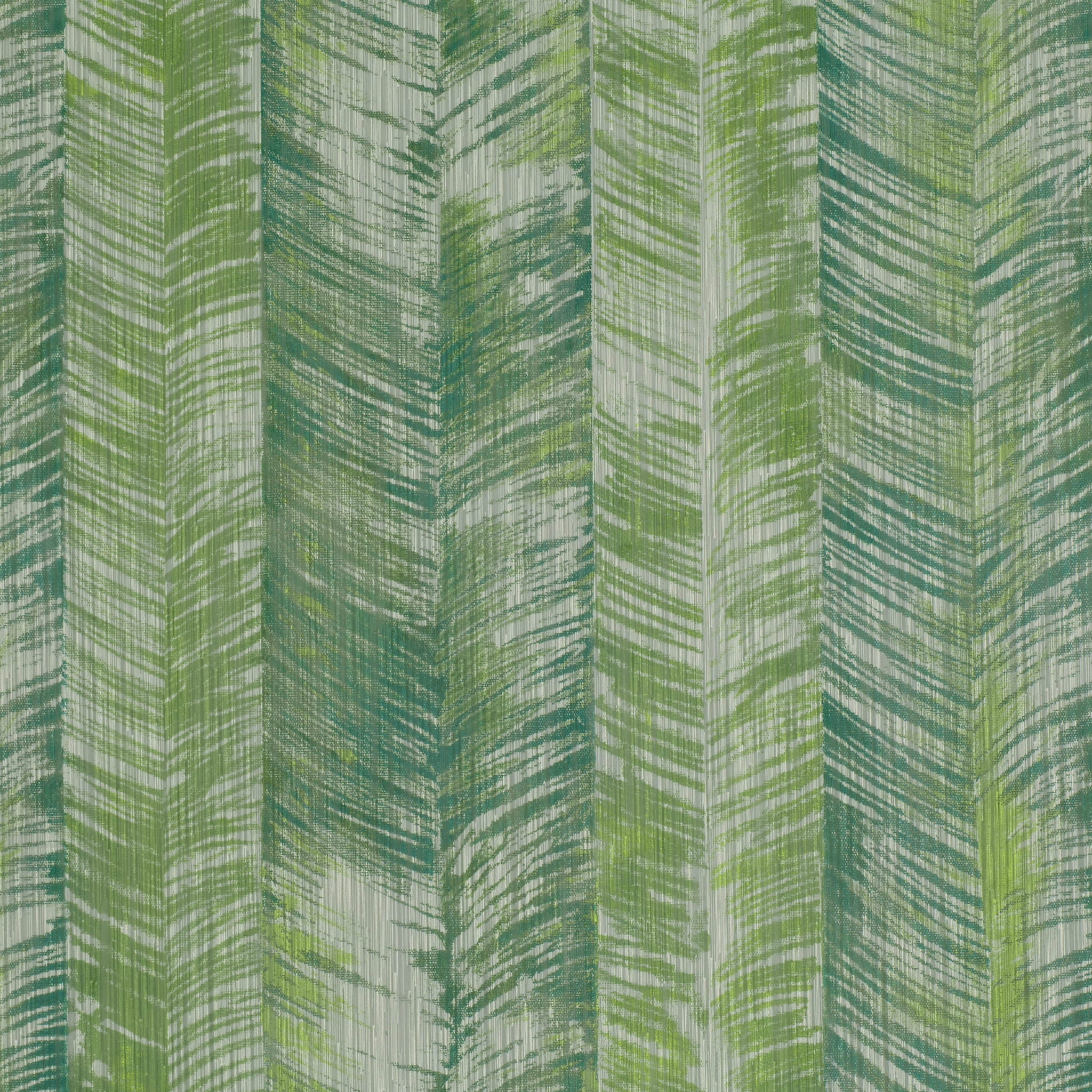 Tkanina Ostara 01 Zamiifolia -Dynamiczna, drukowana tkanina półprzezroczysta z pręgami abstrakcyjnych wzorów liści palmowych, drukowana na teksturowanej tkaninie z nieregularnym efektem strié i detalami fil coupé, które dodają intrygi i tekstury. Idealna do wnętrz, które potrzebują odrobiny egzotyki i wyrazistości. Wzór ten wprowadza do wnętrz świeżość i energię.
