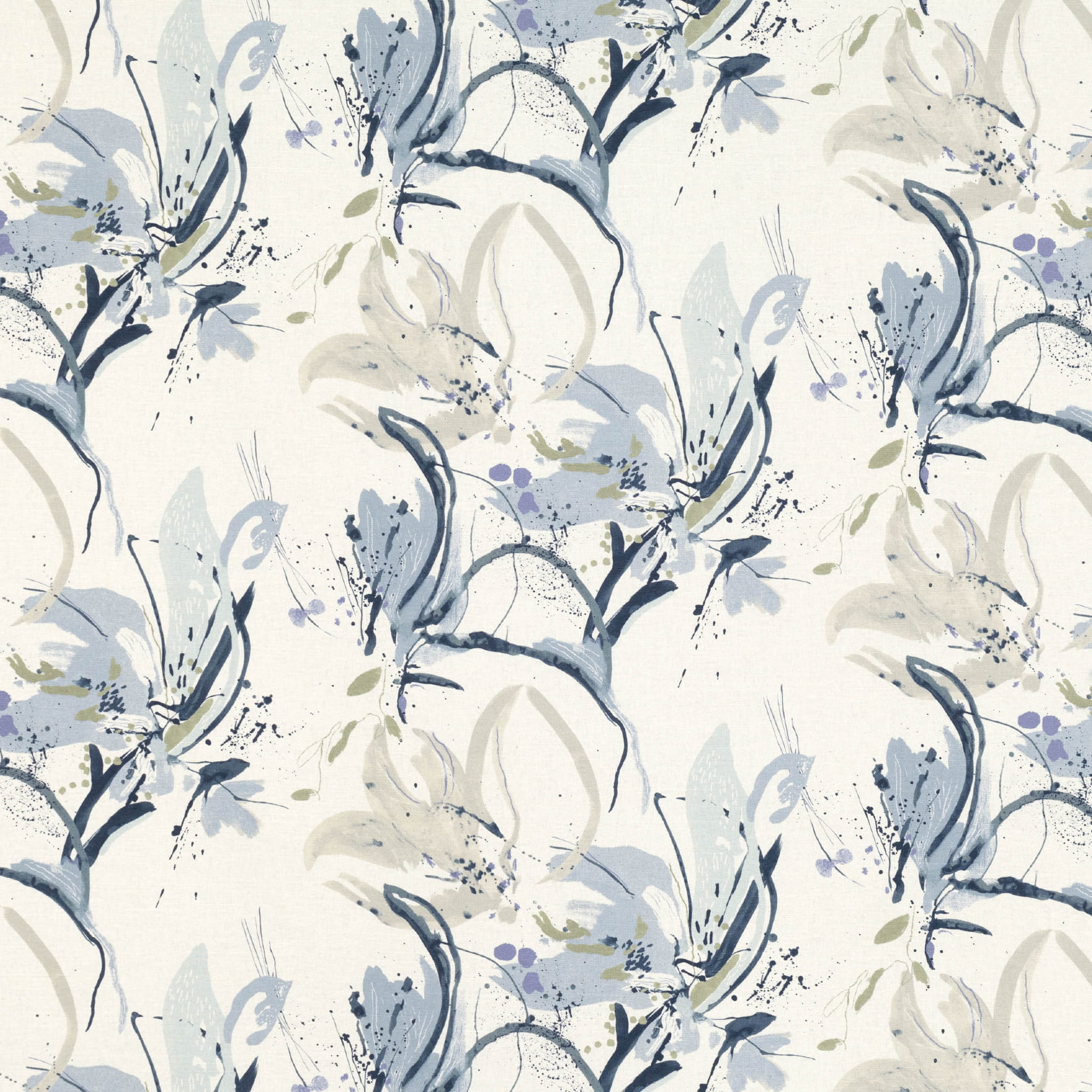 Tkanina Villa Nova 06 Artesia - Abstrakcyjne kwitnące lilie, stworzone za pomocą celowych pociągnięć pędzla, mają dynamiczny charakter. Dzięki intuicyjnym, malarskim rozpryskom, ten artystyczny wzór ma płynność i intensywność, które zostały doskonale uchwycone na tkaninie. To połączenie tworzy wrażenie ruchu i żywiołowości.