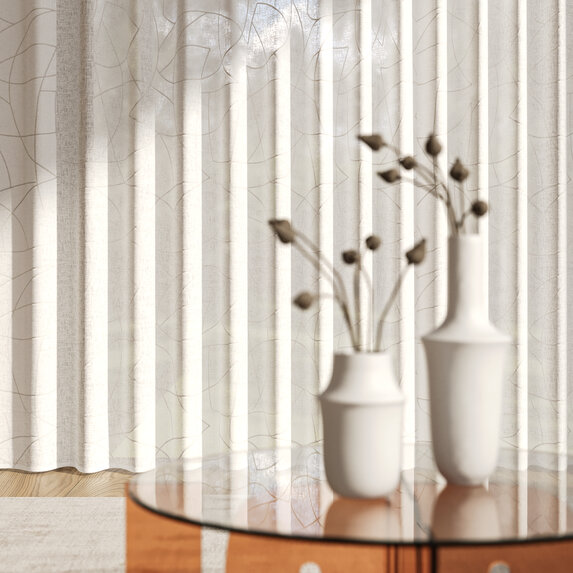 Kolekcja Arcs od Zimmer + Rohde zachwyca subtelnym haftem inspirowanym organicznymi liniami liści. Naturalna bawełniano-poliestrowa baza i dwa ponadczasowe odcienie podkreślają jej elegancką lekkość. Transparentność tkaniny harmonijnie łączy wnętrze z otaczającą zielenią.