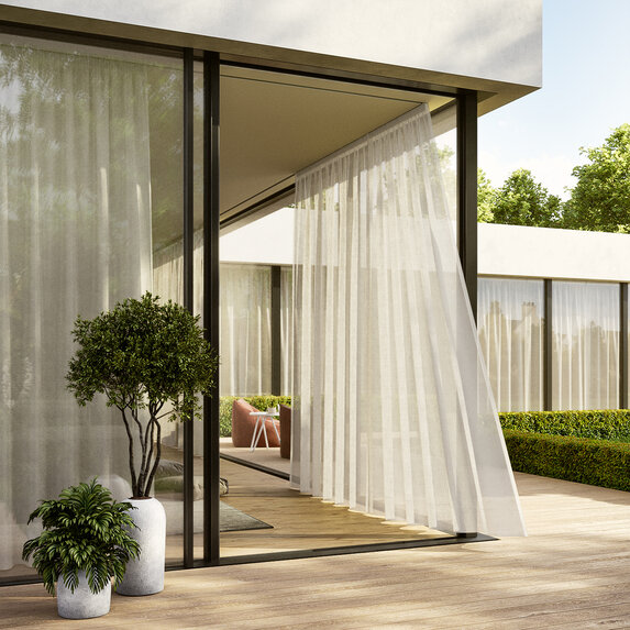 Tkanina Zimmer + Rohde 131 Capri Plus wyróżnia się lekkim, otwartym splotem, który pięknie przepuszcza światło. Jej 17 miękkich kolorów oraz doskonała odporność na światło tworzą atmosferę niekończącego się lata. To idealna propozycja do wnętrz pełnych relaksu oraz do zastosowań zewnętrznych.