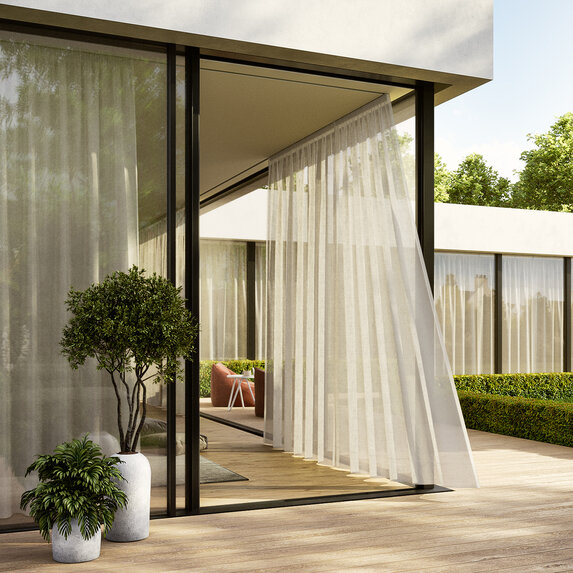Tkanina Zimmer + Rohde 331 Capri Plus wyróżnia się lekkim, otwartym splotem, który pięknie przepuszcza światło. Jej 17 miękkich kolorów oraz doskonała odporność na światło tworzą atmosferę niekończącego się lata. To idealna propozycja do wnętrz pełnych relaksu oraz do zastosowań zewnętrznych.