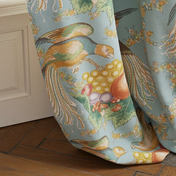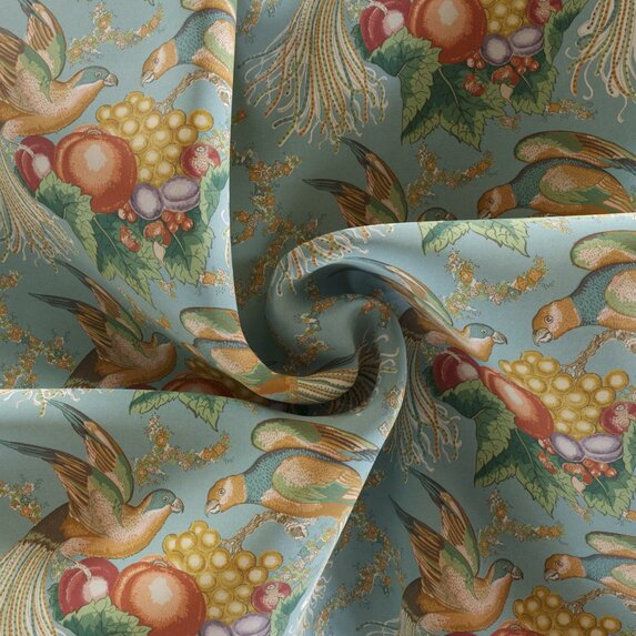 Kolekcja Belvedere od Zimmer + Rohde łączy archiwalny wzór z eleganckim chintzowym wykończeniem. Motyw dwóch papug wśród owoców tworzy lekką, narracyjną dekorację. Cztery efektowne kolorystyki pozwalają dopasować tkaninę do klasycznych i nowoczesnych wnętrz.