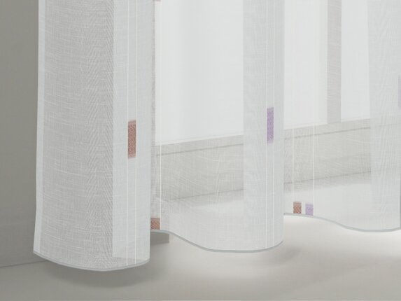 Tkanina Zimmer + Rohde 585 Archimedes wyróżnia się transparentną strukturą Scherli, w której dodatkowe nici efektowe są przycinane, tworząc frędzelkowy efekt. Dwukolorowe akcenty i żakardowy wzór dodają jej dekoracyjnej głębi, a grubsza fantazyjna przędza na krawędziach tworzy subtelny pasek. To elegancka tkanina o wyjątkowym, lekkim charakterze.