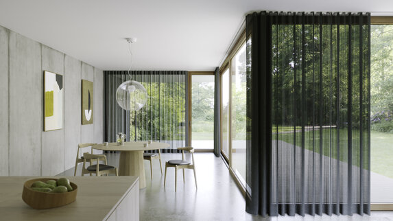 Tkanina Zimmer + Rohde 683 Arise FR RE wyróżnia się elegancką strukturą microbouclé z delikatnym metalicznym efektem. Jej półtransparentna powierzchnia zapewnia równowagę między światłem a prywatnością, a ognioodporność i łatwa pielęgnacja zwiększają jej funkcjonalność. Dodatek recyklingowanego poliestru sprawia, że to wybór przyjazny środowisku.