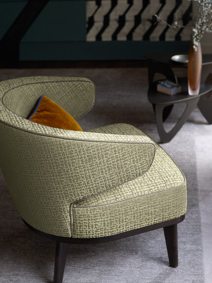 Tkanina Zimmer + Rohde 696 Bebop łączy połyskującą satynę z aksamitnym chenille, tworząc trójwymiarową, elegancką strukturę. Lśniące tło przełamane miękkim włóknem nadaje materiałowi głębi i przyjemnej objętości. Dzięki wytrzymałości 30 000 Martindale doskonale sprawdza się w intensywnie użytkowanych wnętrzach.