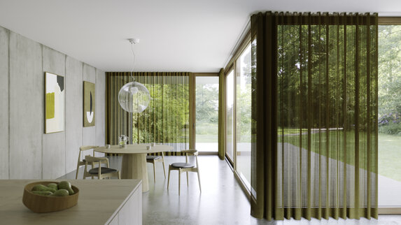 Tkanina Zimmer + Rohde 742 Arise FR RE wyróżnia się elegancką strukturą microbouclé z delikatnym metalicznym efektem. Jej półtransparentna powierzchnia zapewnia równowagę między światłem a prywatnością, a ognioodporność i łatwa pielęgnacja zwiększają jej funkcjonalność. Dodatek recyklingowanego poliestru sprawia, że to wybór przyjazny środowisku.
