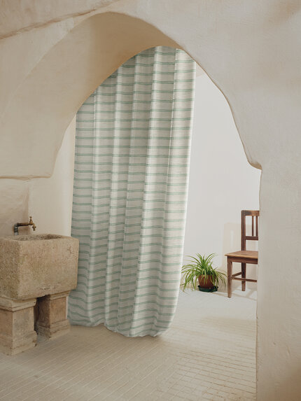 Tkanina Zimmer + Rohde 875 Asni wyróżnia się szerokim, kolorowym pasem inspirowanym berberyjskimi dywanami. Wysokiej jakości len z certyfikowanej belgijskiej tkalni oraz wykończenie washed and tumbled nadają jej miękkości i naturalnego charakteru. To idealna propozycja do nowoczesnych wnętrz i dużych okien otwartych na światło.
