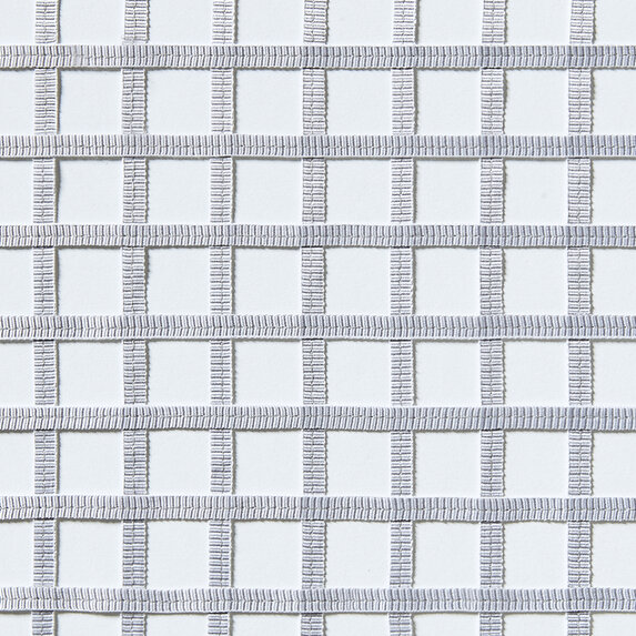 Tkanina Zimmer + Rohde 994 Case FR wyróżnia się geometrycznym wzorem siatki tworzonym przez dwukolorowe taśmy naszywane na rozpuszczalny podkład. Po jego wypłukaniu powstaje lekka, ażurowa struktura o nowoczesnym charakterze. Stabilne wykończenia u góry i dołu ułatwiają obróbkę i montaż tkaniny.